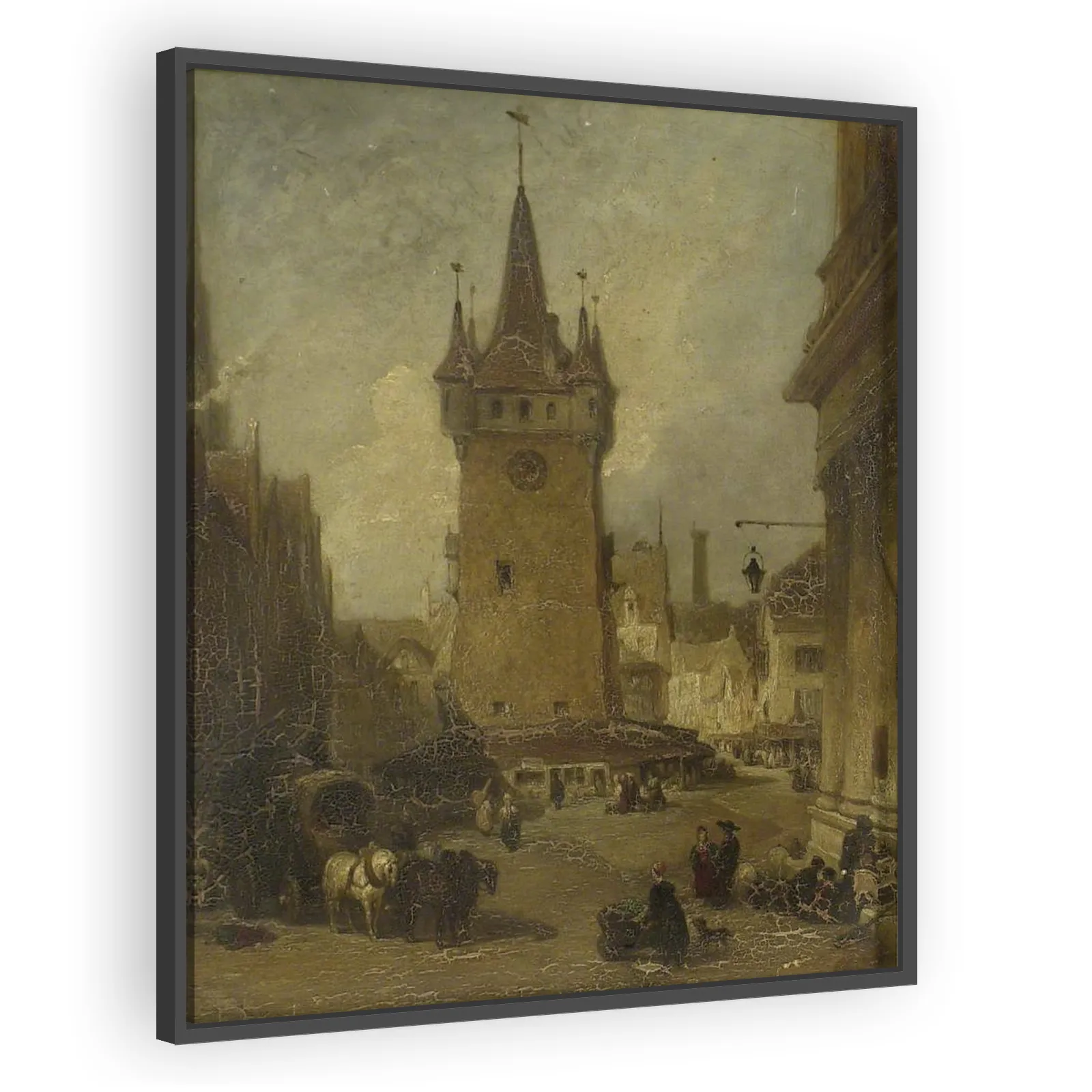 A vivid 1836 view by George Jones capturing the bustling market life of Péronne. Combining topographical accuracy with evocative atmospheric detail, this work appeals to collectors of 19th-century Eur...