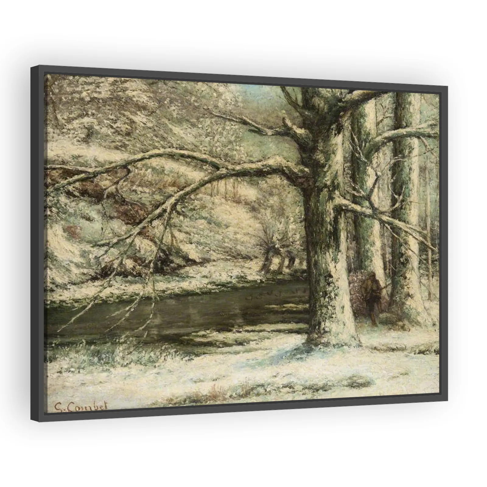 A restrained, atmospheric snow landscape by Gustave Courbet, showcasing his realist sensibility and tactile handling of paint. An evocative winter scene prized for its immediacy and mood, appealing to...