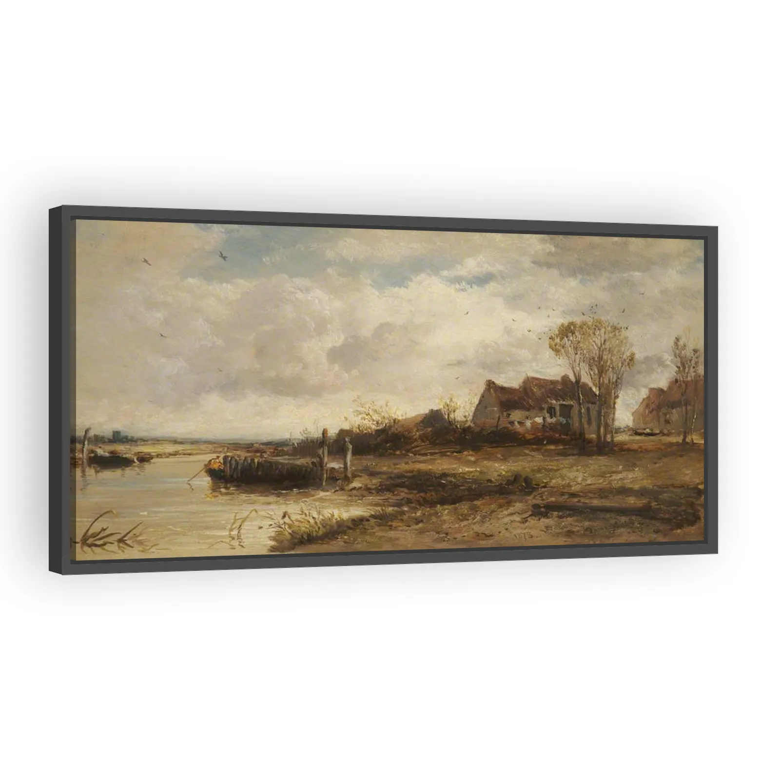 A luminous 1878 landscape by James Webb capturing the tranquil marshes and coastal light of Suffolk. Rendered with sensitive brushwork and atmospheric tone, this view blends topographical accuracy wit...