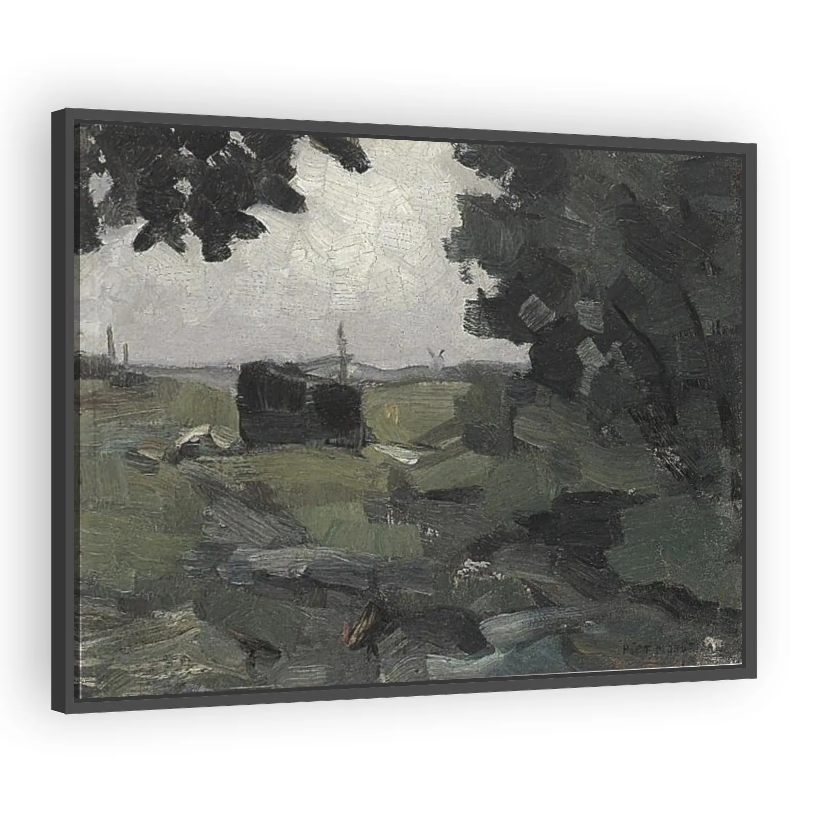 An early Piet Mondrian work (1901) capturing the flat Dutch polder with lyrical brushwork. This evocative landscape bridges natural observation and emerging modern sensibilities—appealing to collector...