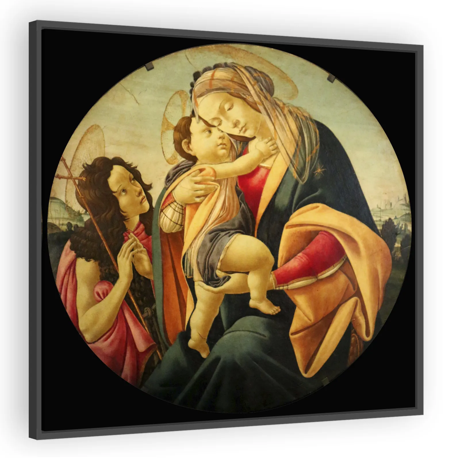 An intimate Madonna and Child with the young Saint John attributed to Sandro Botticelli (c. 1450). This tender devotional composition exemplifies early Florentine grace and the lyrical linear style th...
