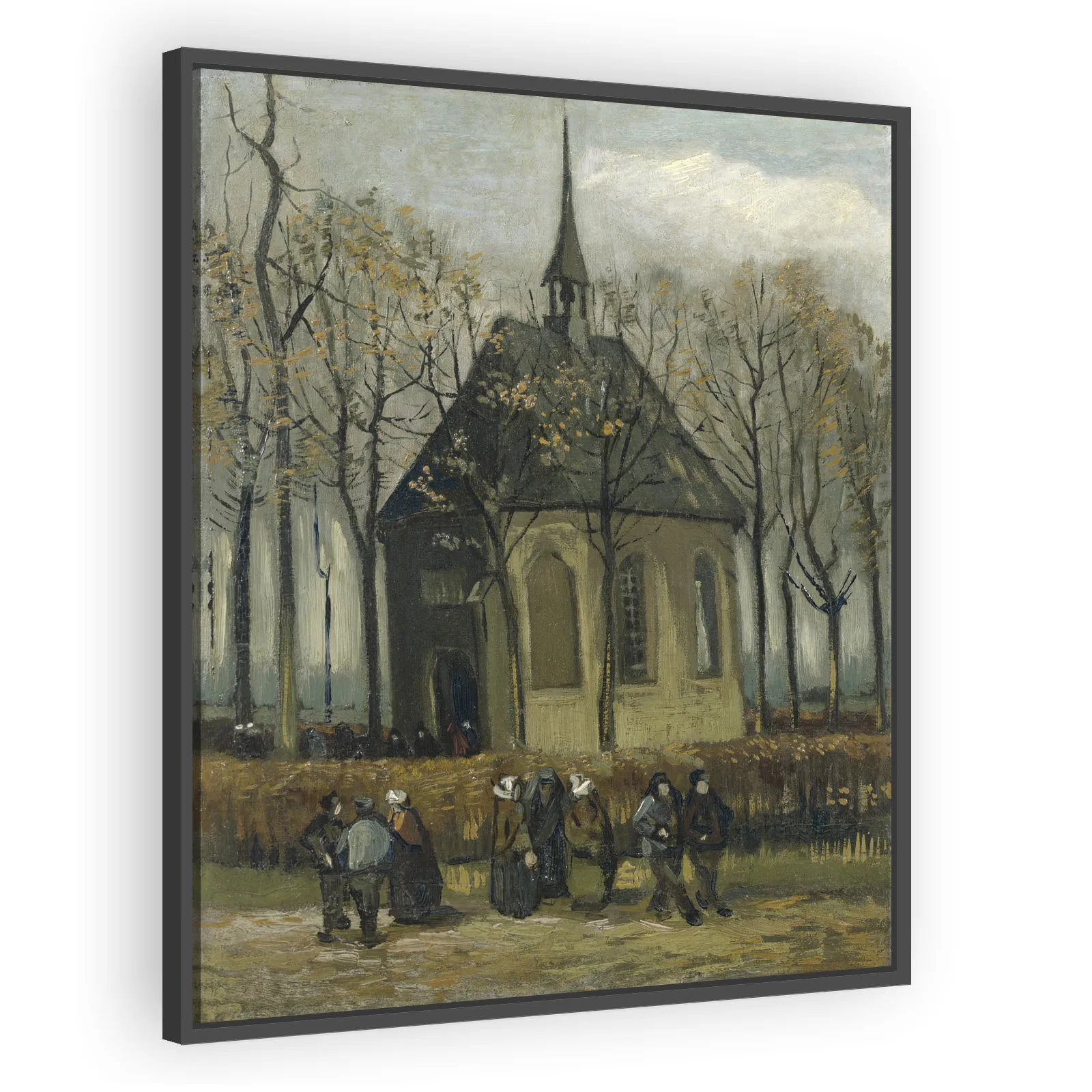 An evocative late-1884 work by Vincent van Gogh depicting villagers departing the Reformed Church in Nuenen. The scene highlights Van Gogh’s early naturalism, dramatic composition, and emerging expres...