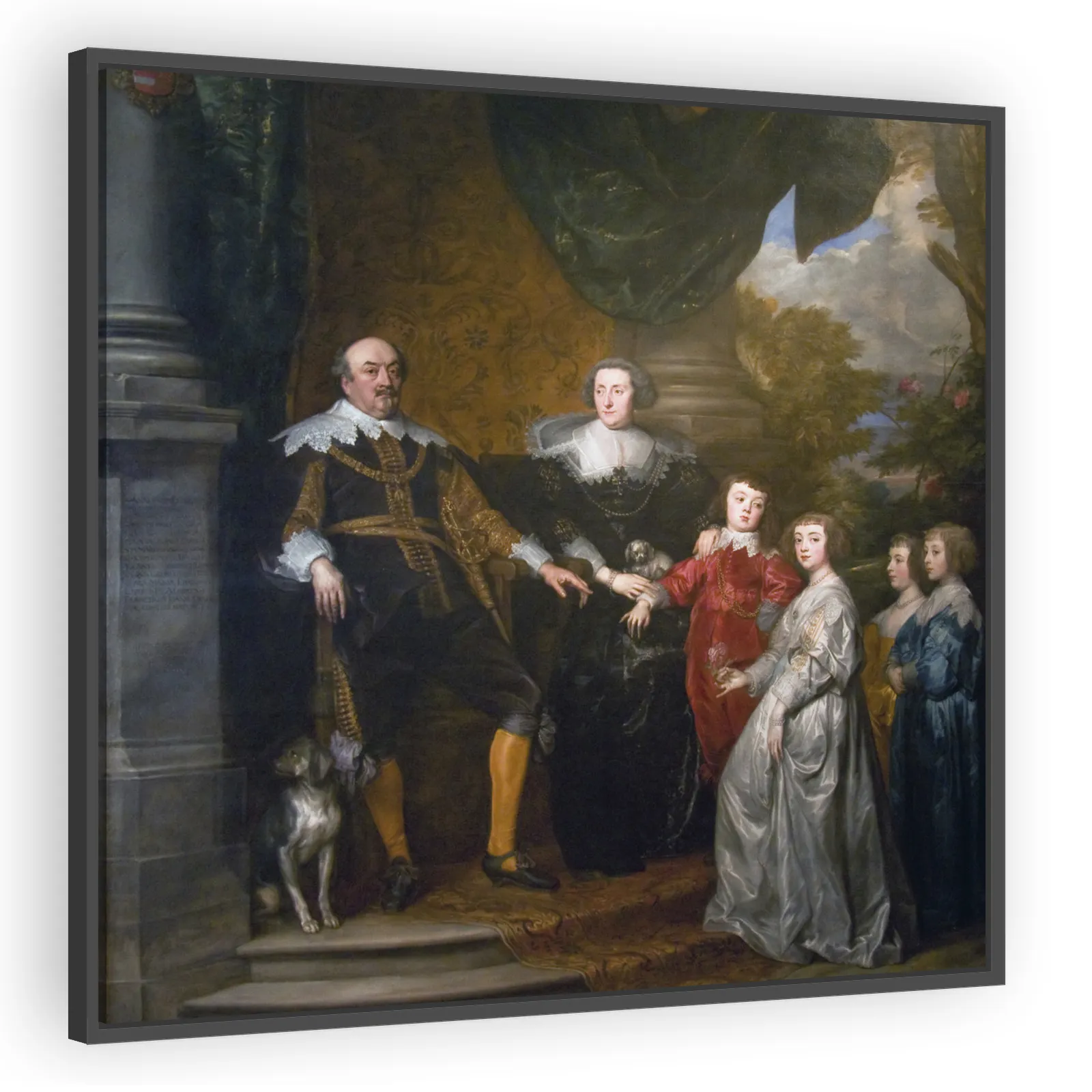 A grand 1634 family group by Anthony van Dyck, this monumental oil captures Jan VIII 'the Younger' of Nassau-Siegen with his wife and children in elegant courtly fashion—an exemplary Baroque portrait...