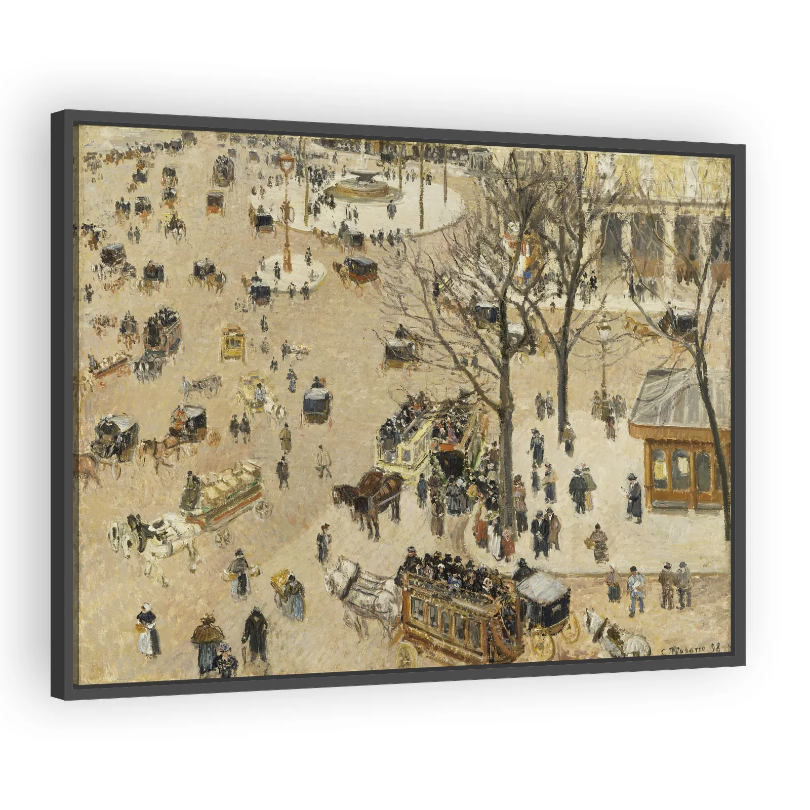 An evocative 1898 cityscape by Camille Pissarro, capturing Parisian life with loose, luminous brushwork. A refined example of late Impressionist urban plein air painting, prized for its atmosphere, co...