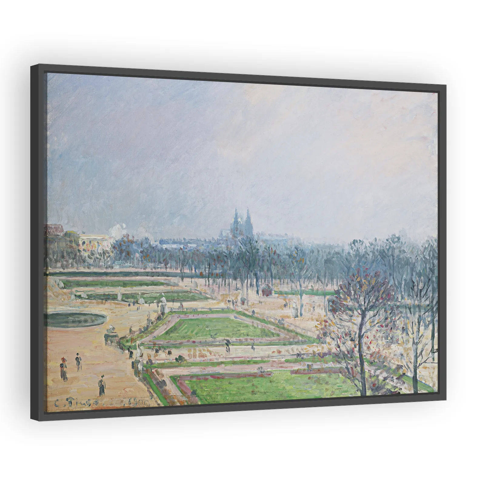 Camille Pissarro's atmospheric view of the Tuileries Garden (1900) captures Paris in a soft morning mist. A masterful Impressionist study of light, air and urban calm—ideal for collectors who apprecia...