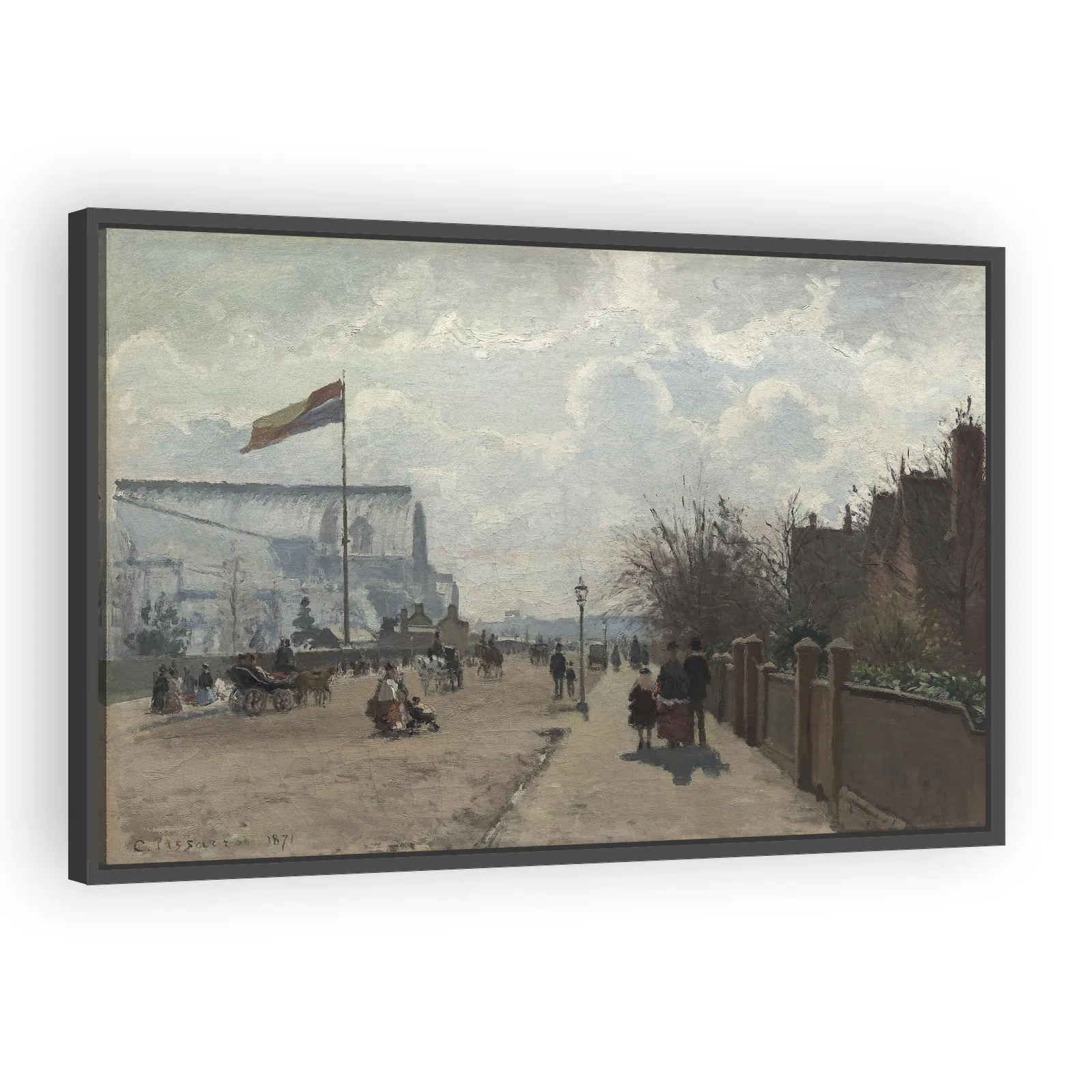 Camille Pissarro’s The Crystal Palace (1871) captures the gleam of modern architecture and urban life with Impressionist light, loose brushwork, and a muted yet luminous palette—an evocative study of...
