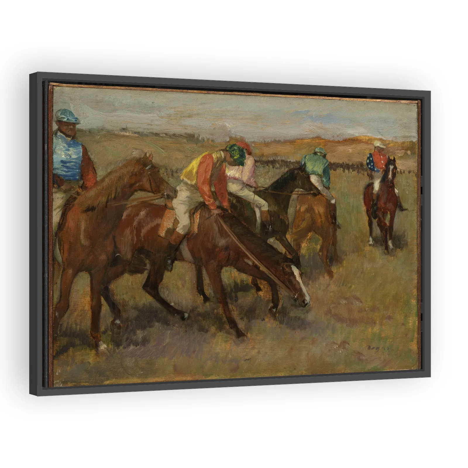 Edgar Degas (1834–1917) was a French artist associated with Impressionism, celebrated for his incisive studies of modern life—especially dancers, theater scenes, and racetracks. Working in oil, pastel, print and sculpture, Degas combined academic draftsmanship with experimental techniques; his works are prized for their compositional daring and decorative appeal.