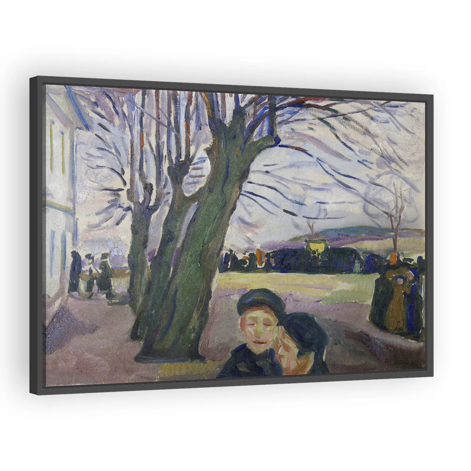 Edvard Munch’s 1915 scene captures the charged atmosphere of a rural auction with expressionist energy. Rendered with bold brushwork and somber tones, it combines social observation and emotional inte...