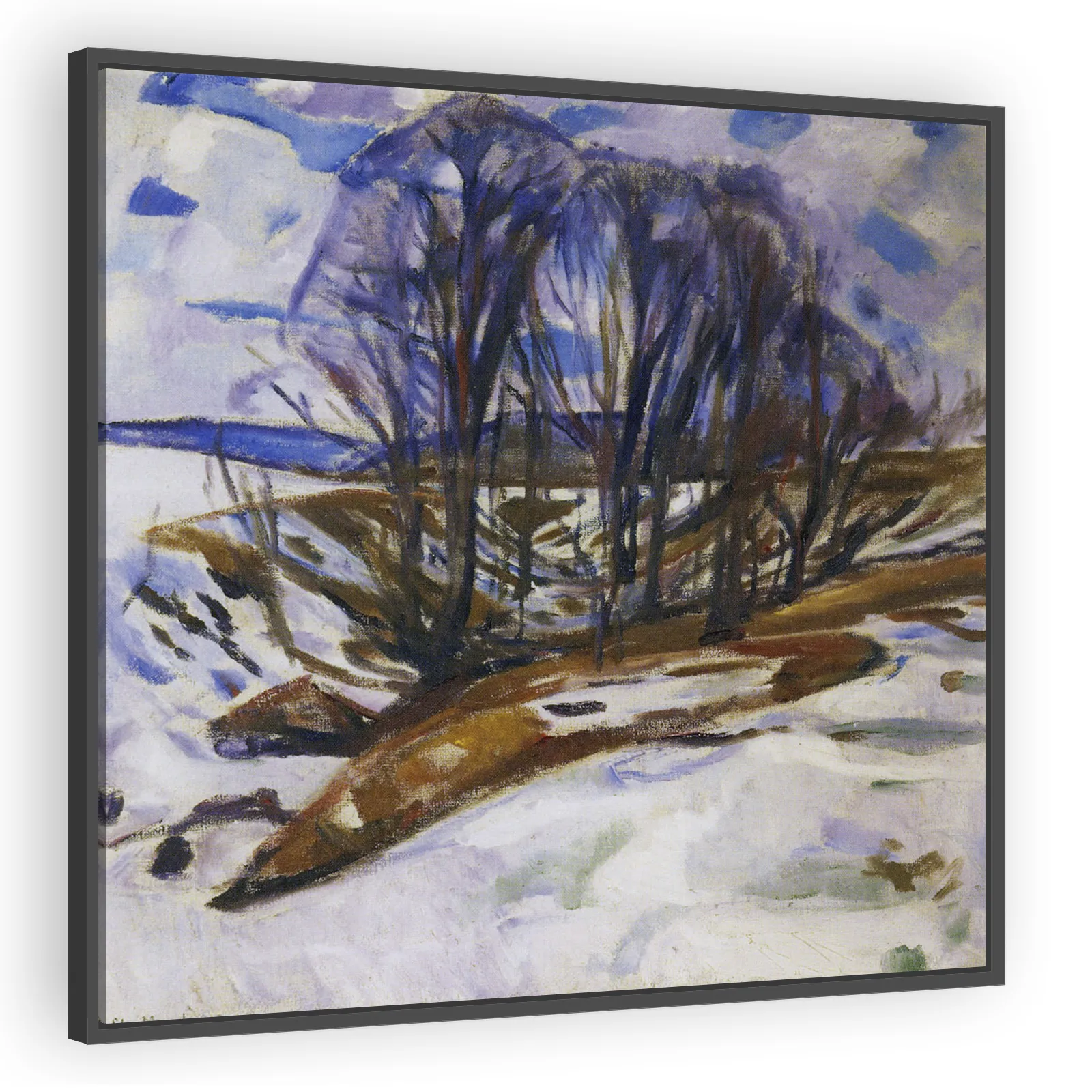 Edvard Munch’s Thawing Snow (1919) captures a liminal moment of seasonal transition with expressive brushwork and a restrained palette. Ideal for collectors who appreciate modernist mood, psychologica...