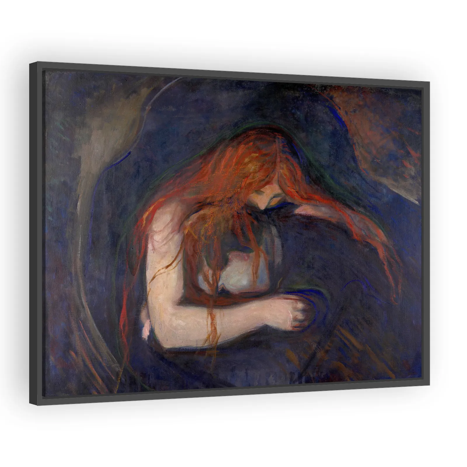 Edvard Munch’s Vampire (1895) captures psychological intensity with expressionist color and a haunting embrace. A pivotal work in Symbolist and proto-Expressionist currents, it appeals to collectors d...
