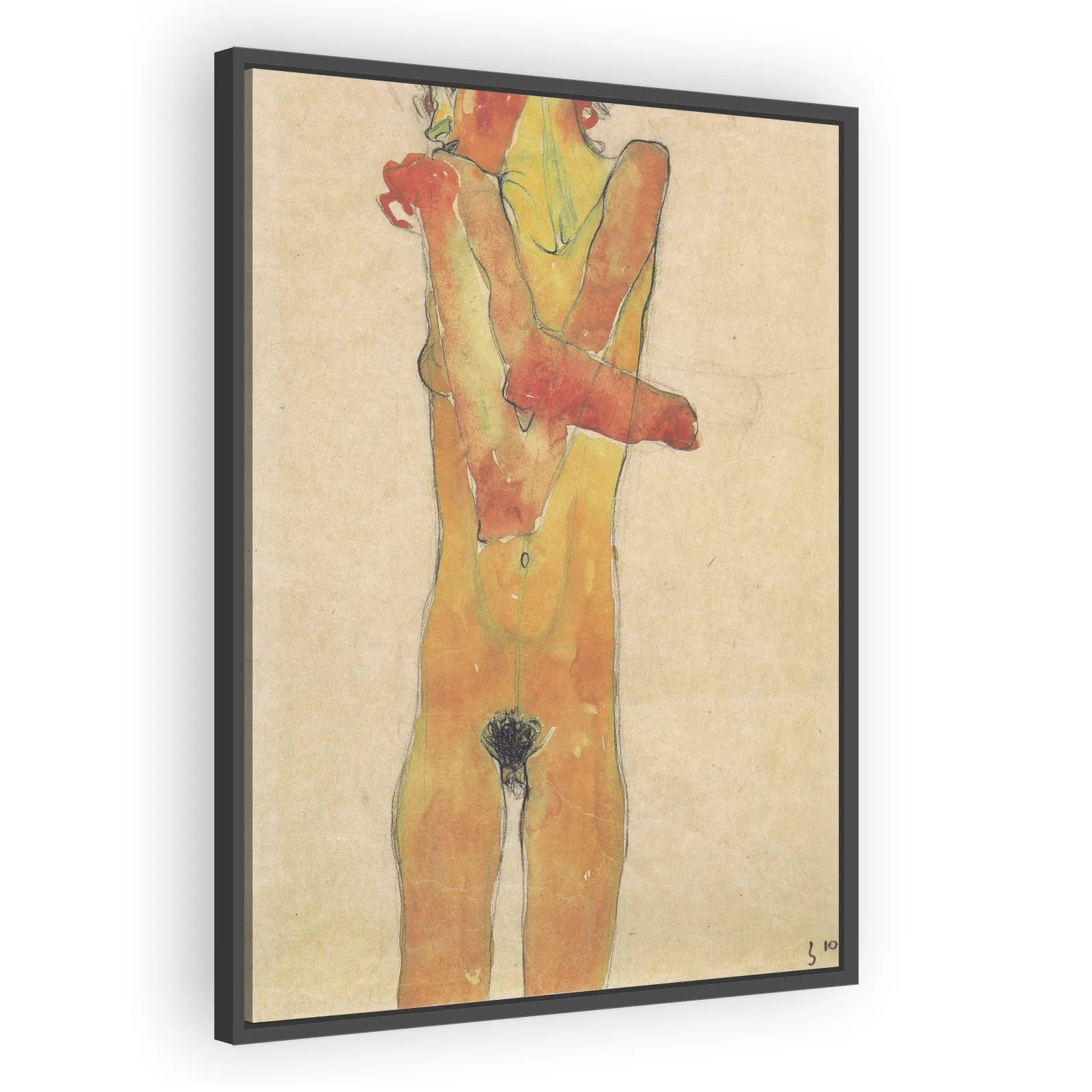 A striking 1910 study by Egon Schiele that exemplifies his raw, linear expressionism. The figure’s precarious pose and taut contours capture psychological intensity and modernist daring—an arresting p...