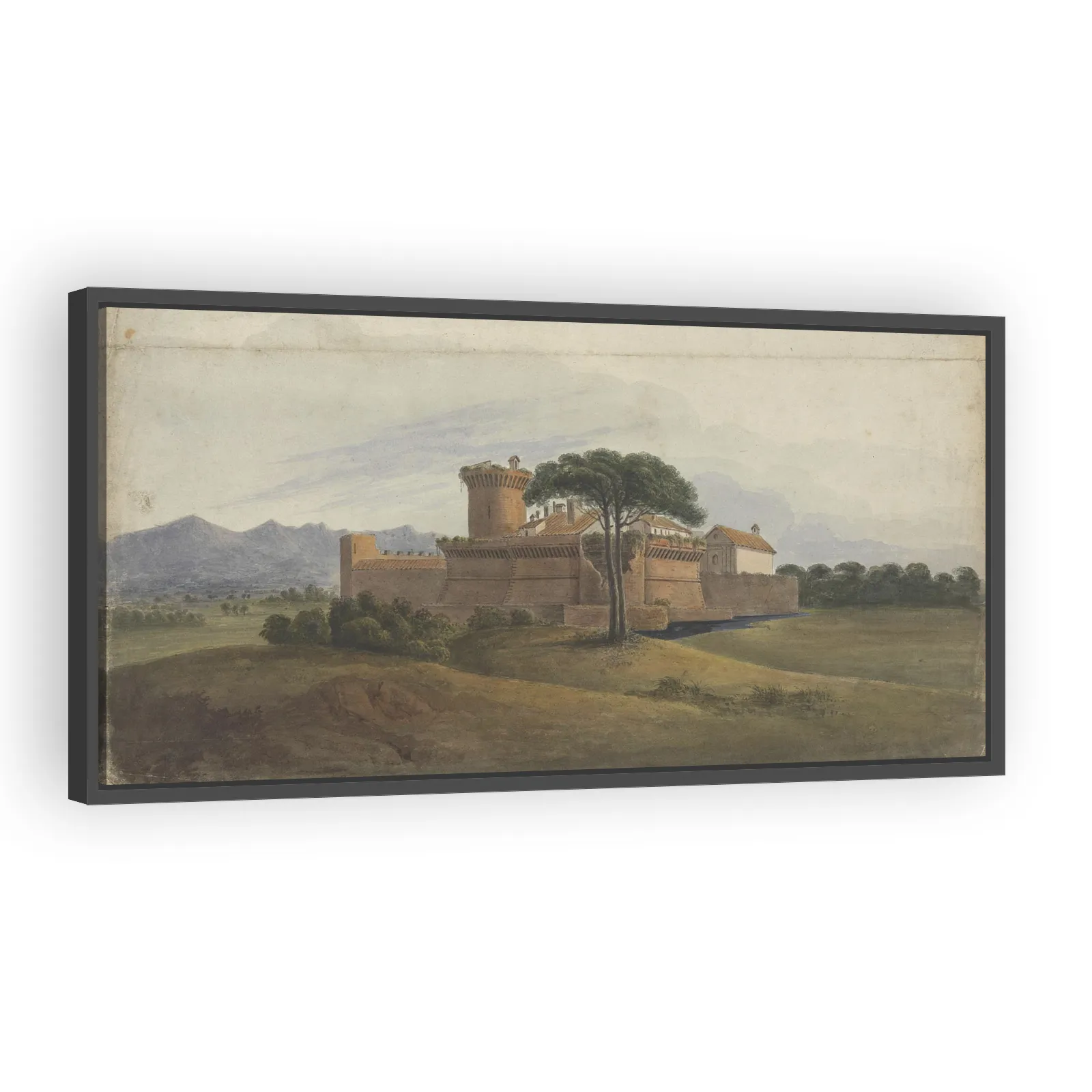 A serene 1818 view by Isaac Weld capturing the medieval castle at Ostia set against distant mountains. Evocative of Romantic travel sketches, this work blends topographical accuracy with expressive at...
