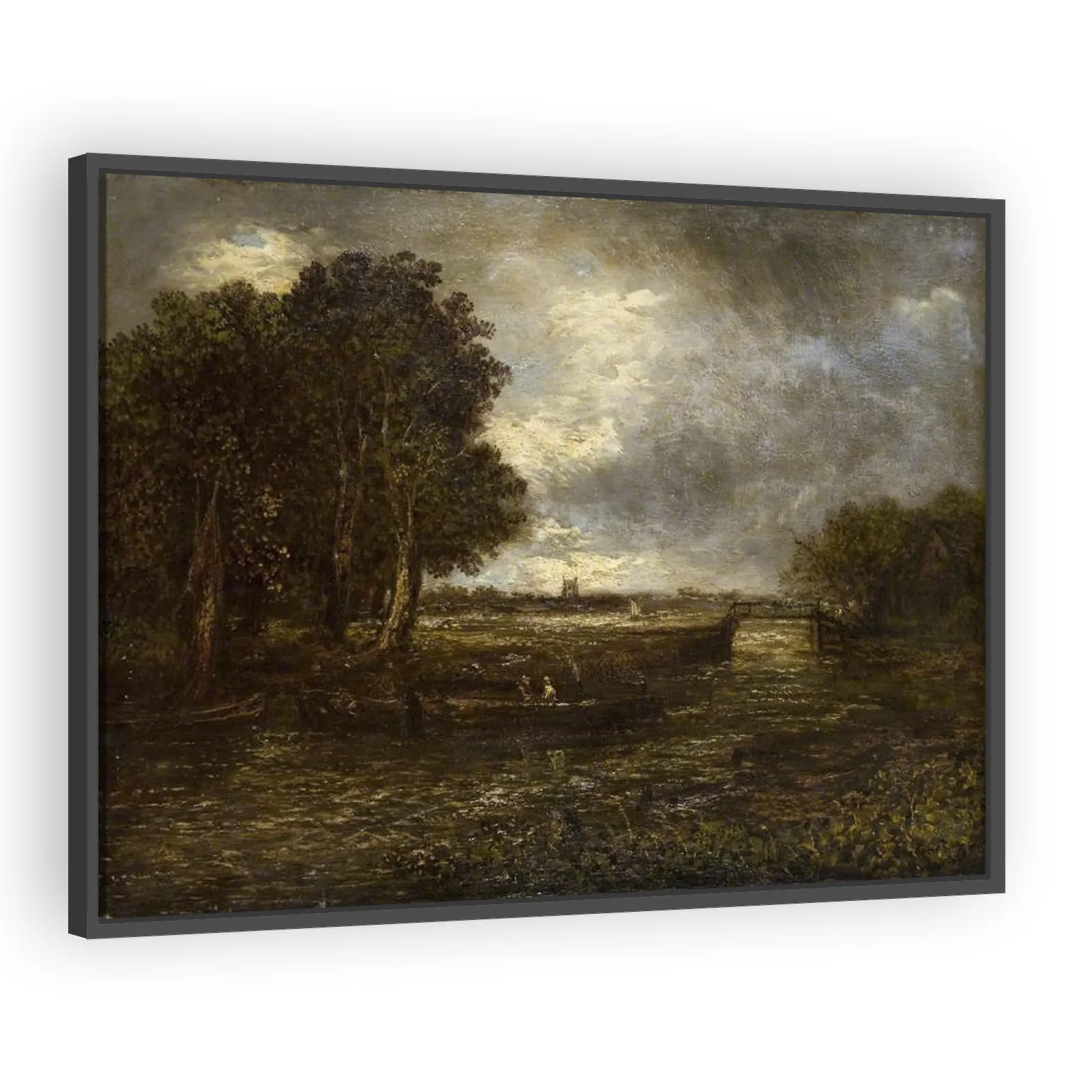 John Constable’s evocative river scene captures the tranquil movement of barges and the mutable English sky. A study in natural light, atmospheric observation, and tactile brushwork—appealing to lover...