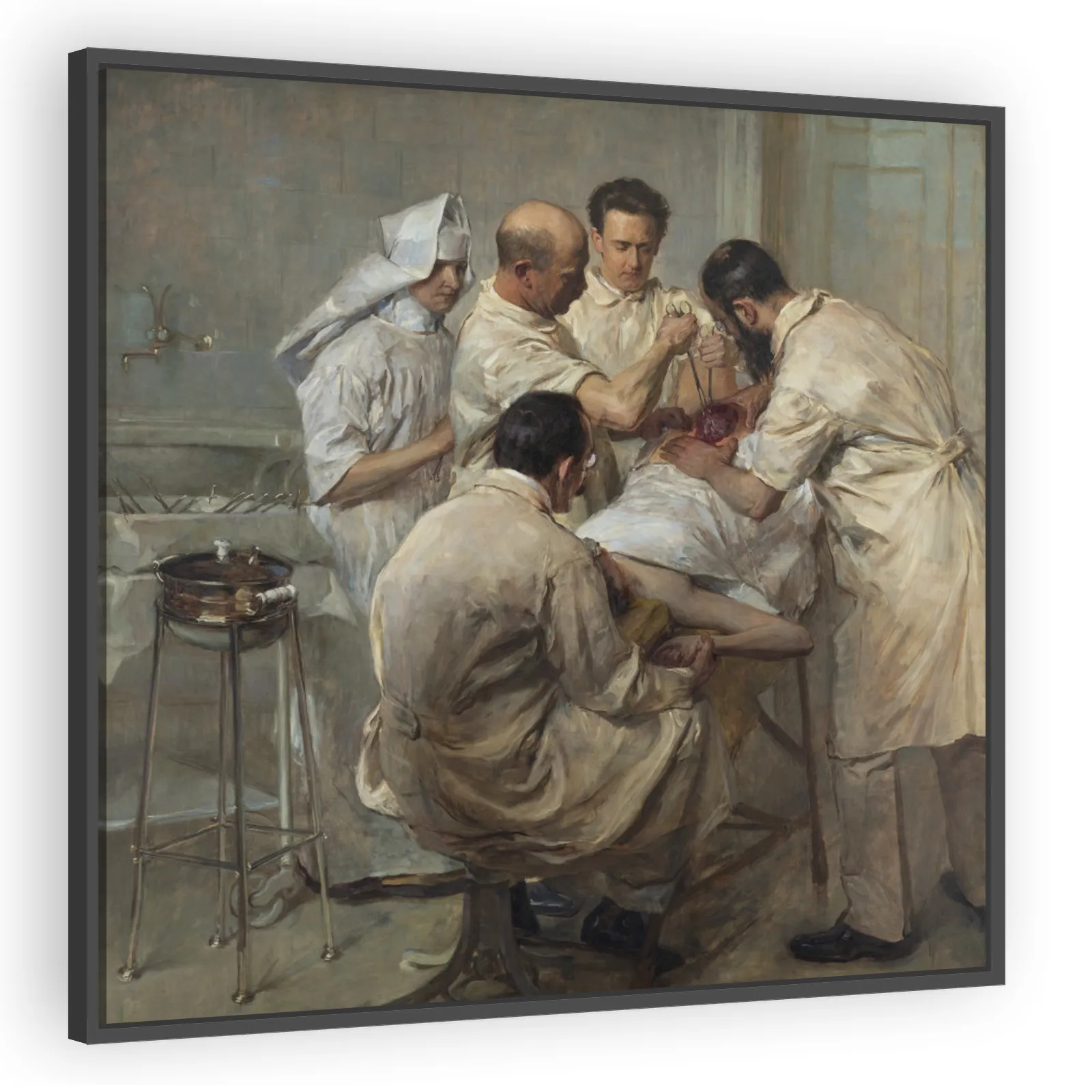 A striking 1909 portrayal by John Quincy Adams showing Ernst Wertheim (1864–1920) engaged in a surgical procedure. A compelling intersection of medical history and early 20th-century realism, held in...