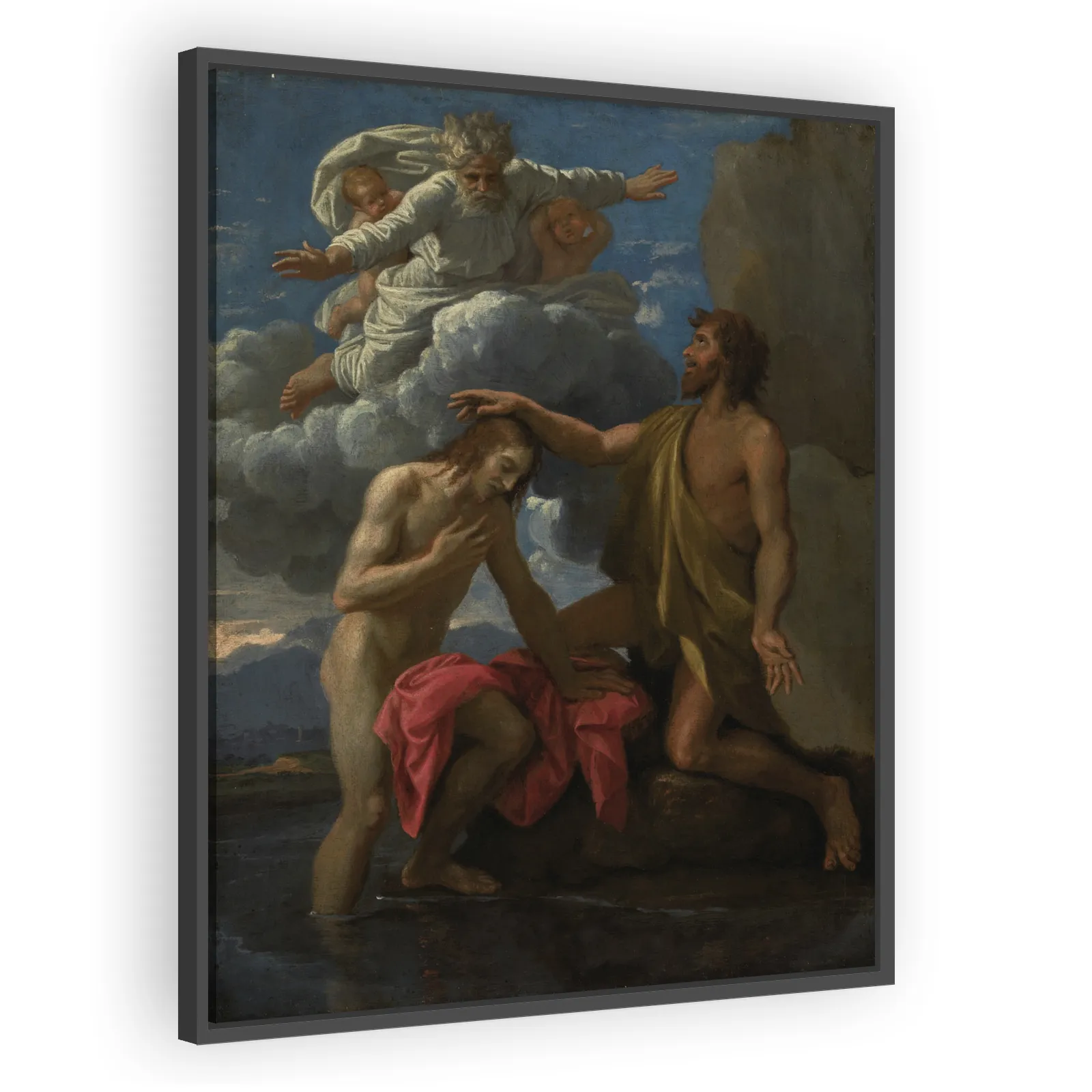 A dramatic mid-17th-century depiction of the Baptism of Jesus, notable for its expressive use of light and composition. This work evokes Baroque reverence and narrative clarity, making it a powerful a...