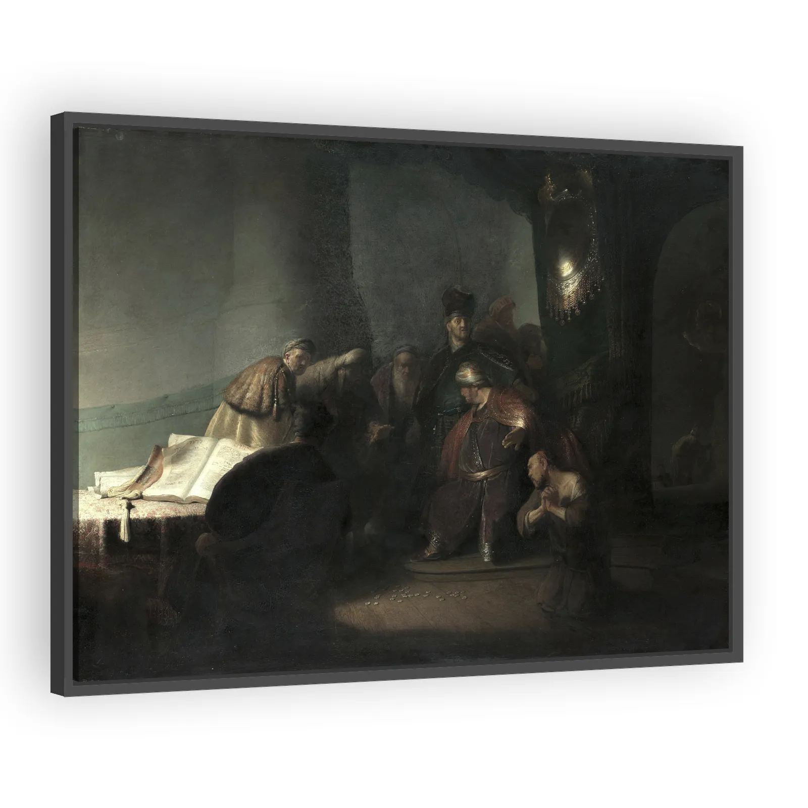 Rembrandt's early Leiden masterpiece captures the climactic moment of Judas returning the thirty pieces of silver. The work fuses Baroque drama, stark lighting, and psychological intensity—an evocativ...