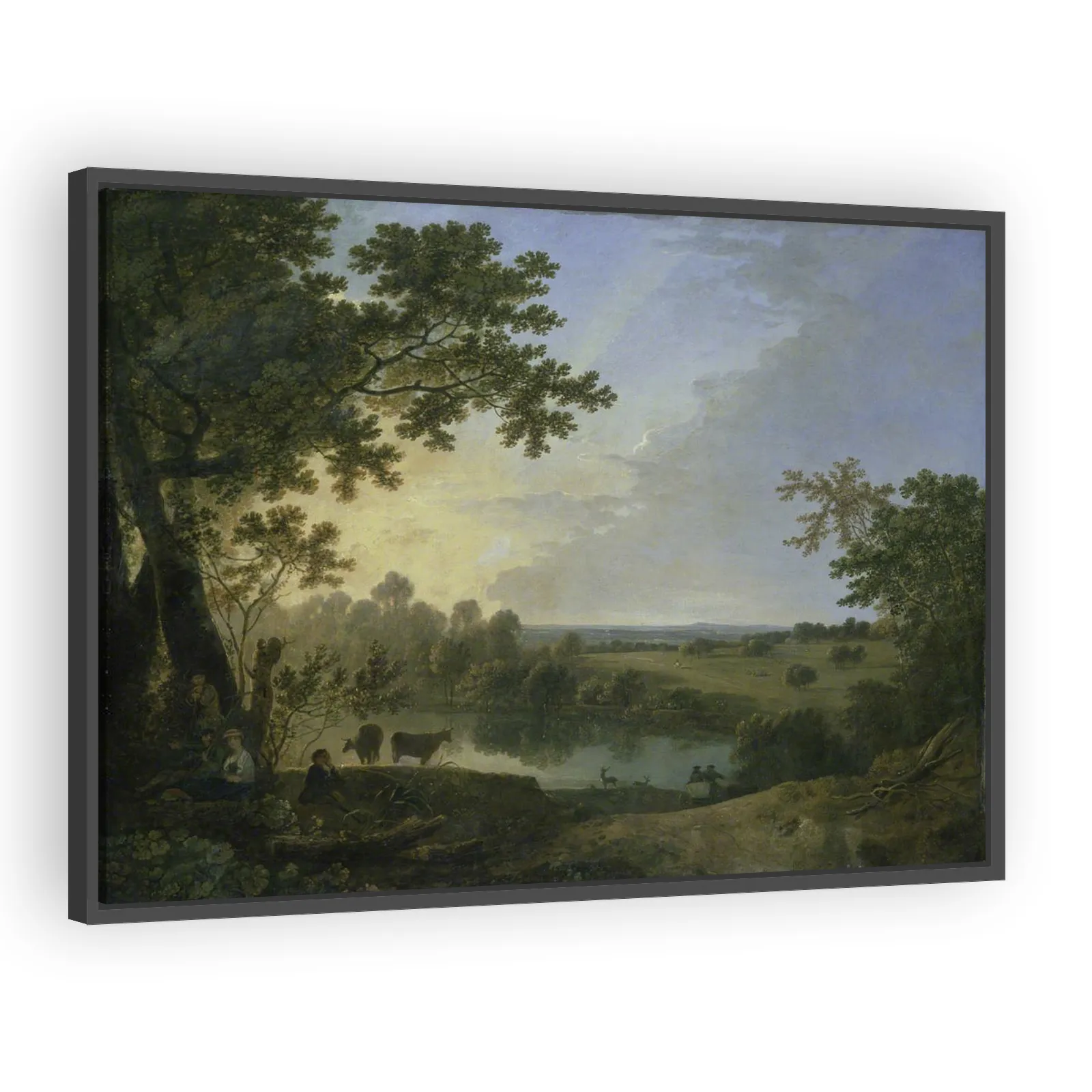 Richard Wilson’s View in Windsor Great Park (1760) captures the tranquil grandeur of the English landscape with classical balance and luminous atmosphere. Celebrated for shaping British landscape pain...