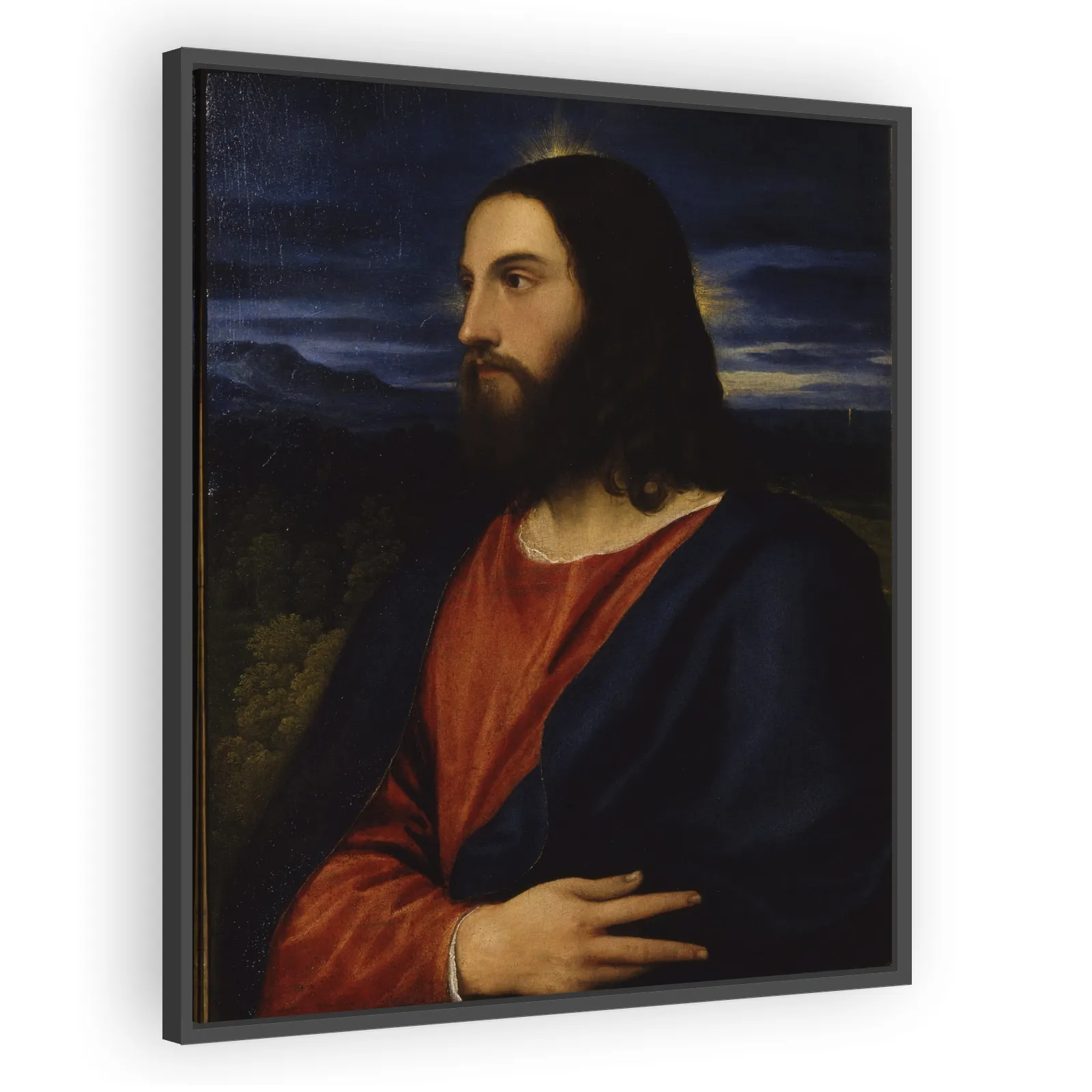 Titian’s Christ the Redeemer (1533) presents a monumental, humanized image of Christ rendered with rich Venetian color and painterly brushwork, a devotional centerpiece from the Galleria Palatina that...