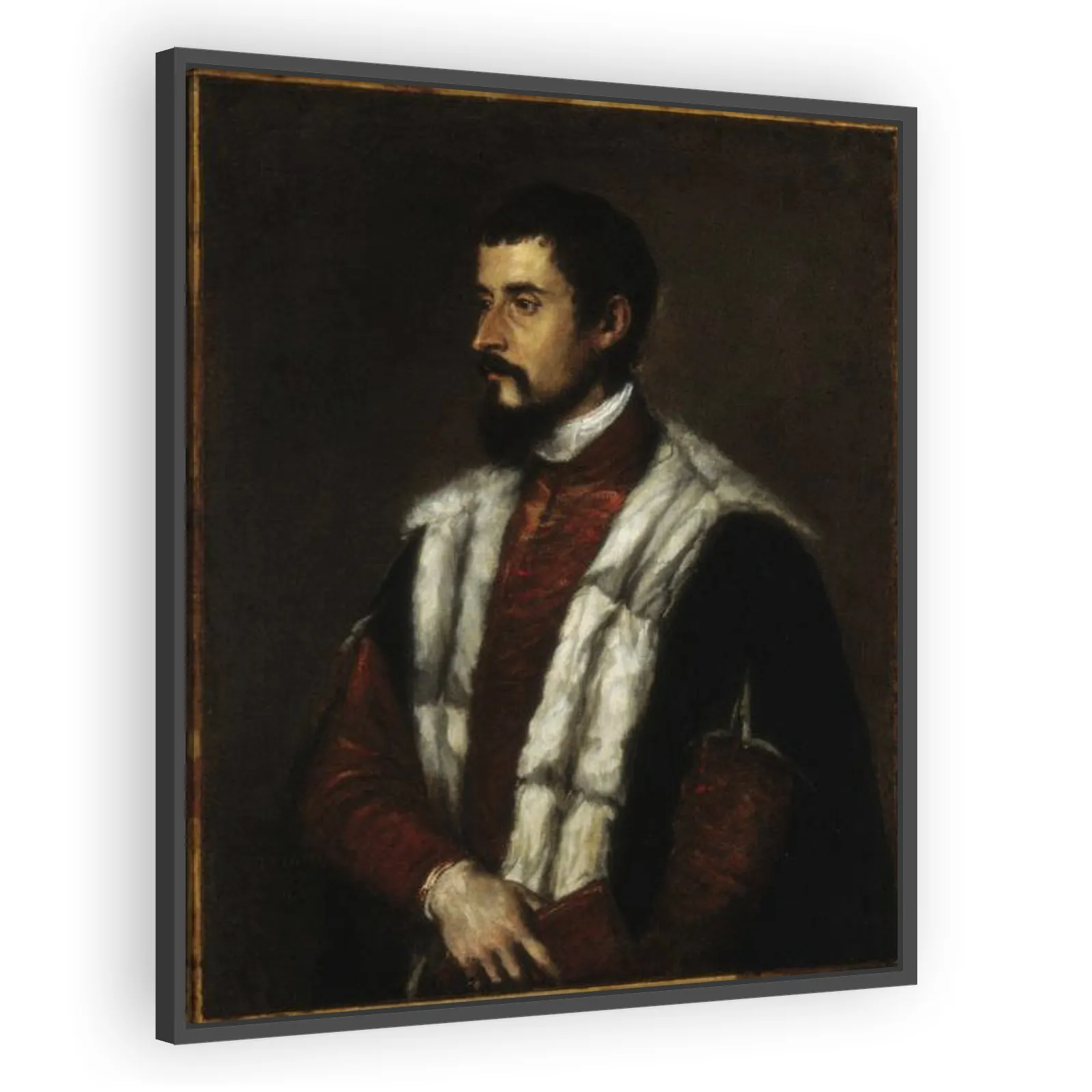A commanding 1561 portrait by Titian in the Baltimore Museum of Art, portraying an anonymous noble with rich color, confident brushwork, and psychological presence—an exemplar of late Renaissance port...