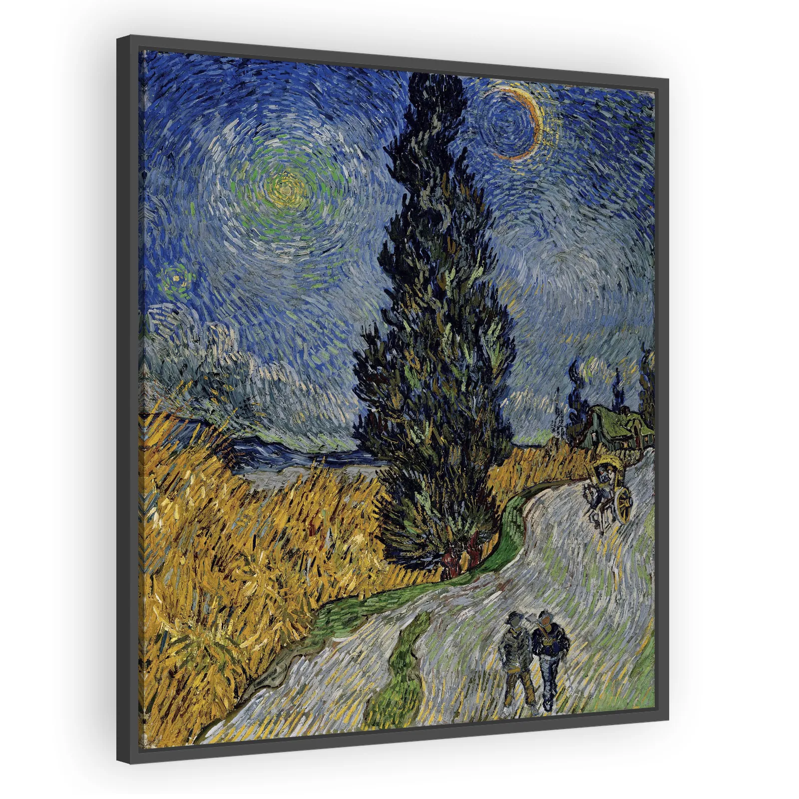 A late-Vincent van Gogh composition from 1890, Road with Cypress and Star pairs turbulent Post-Impressionist brushwork with a contemplative nocturnal motif. Its vivid color, rhythmic cypresses, and co...