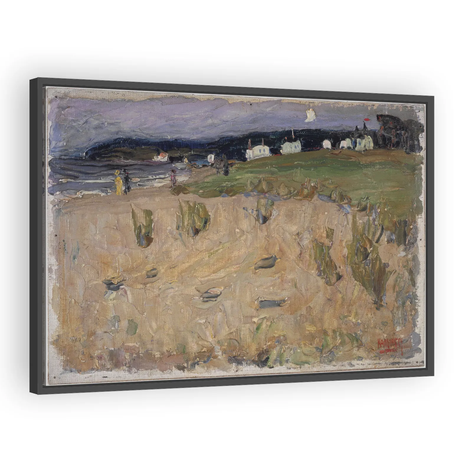 An evocative 1901 landscape by Wassily Kandinsky capturing twilight over Binz on the island of Rügen. This transitional work blends naturalistic observation with expressive color and brushwork, offeri...