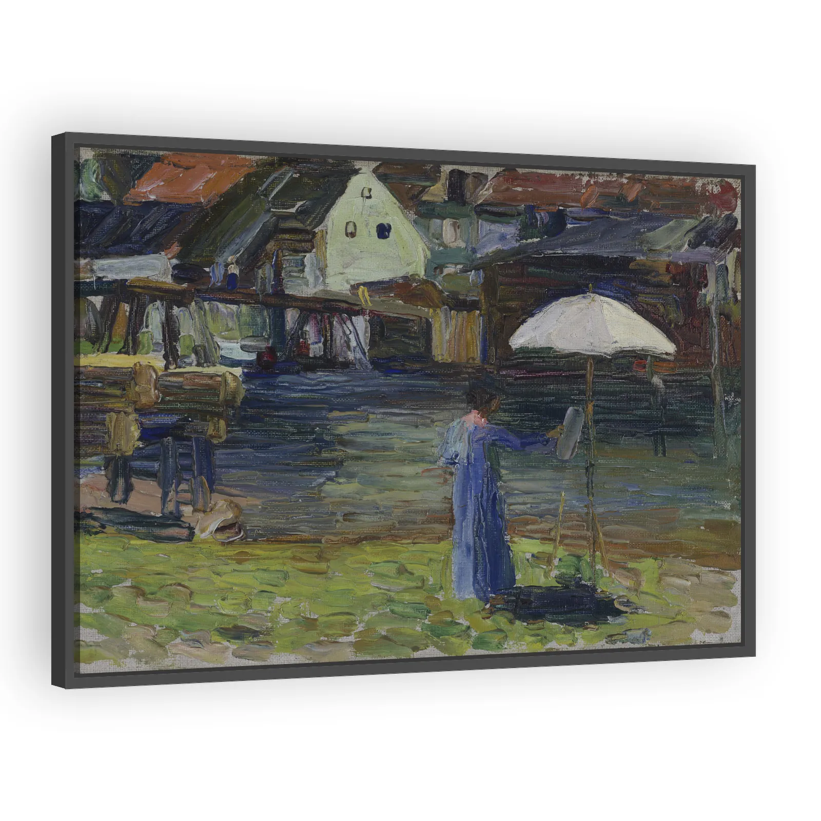 Wassily Kandinsky’s 1903 portrayal of Gabriele Münter at work in Kallmünz captures a pivotal moment in his shift from representational painting toward expressive color. Intimate, observational, and hi...