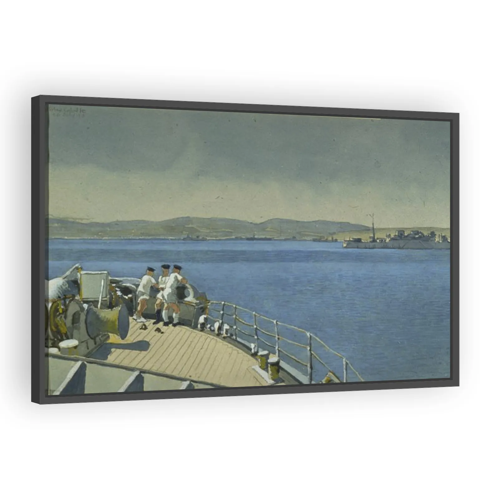 Alex Colville’s 1944 Ratings Look at Gibraltar captures wartime stillness with meticulous realism. A study in composition and tension, the work reflects Colville’s measured gaze on military life and a...