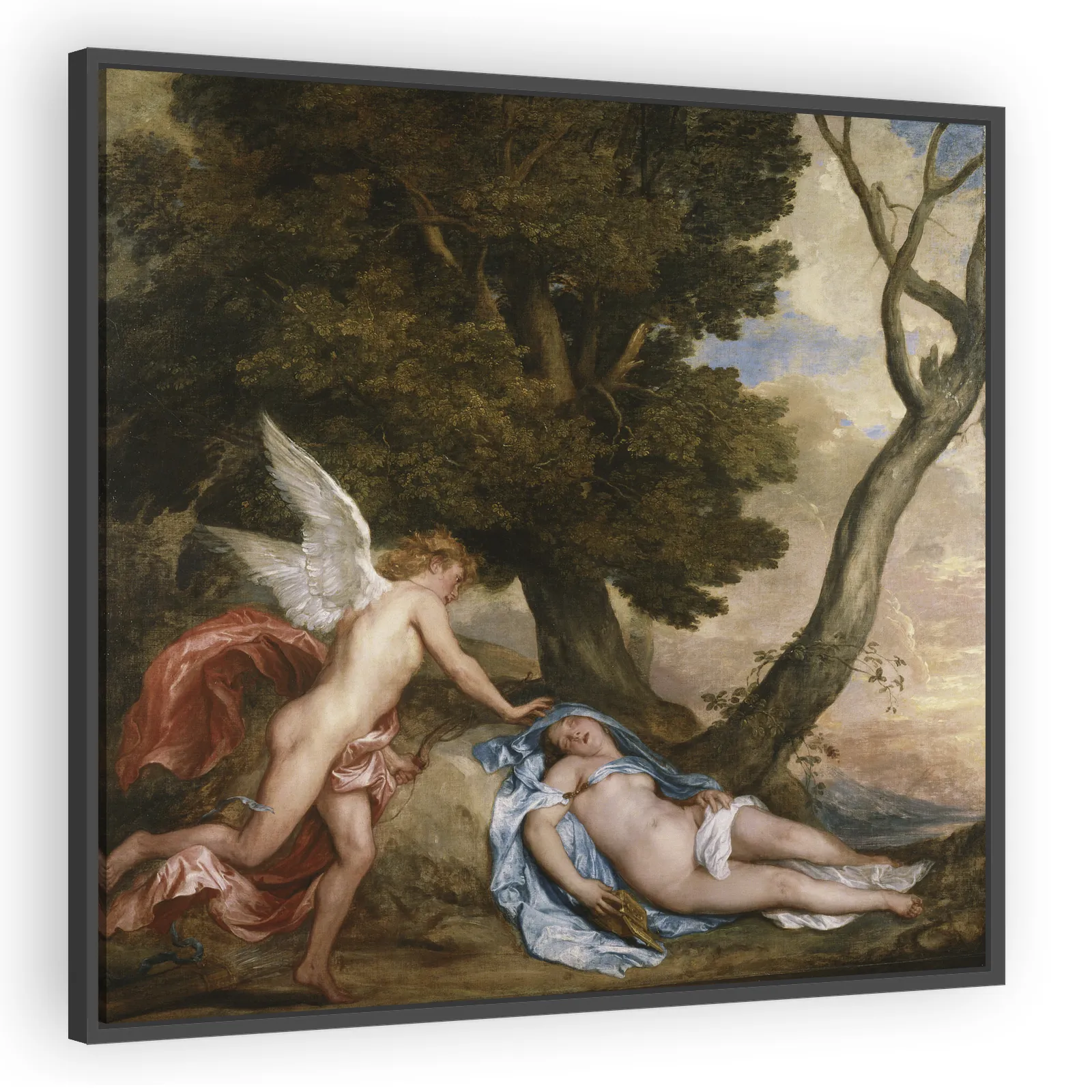 Anthony van Dyck’s 1639 Cupid and Psyche is a Baroque oil on canvas that reinterprets the classical myth with luminous color, elegant draftsmanship, and sensuous grace—an ideal piece for collectors se...