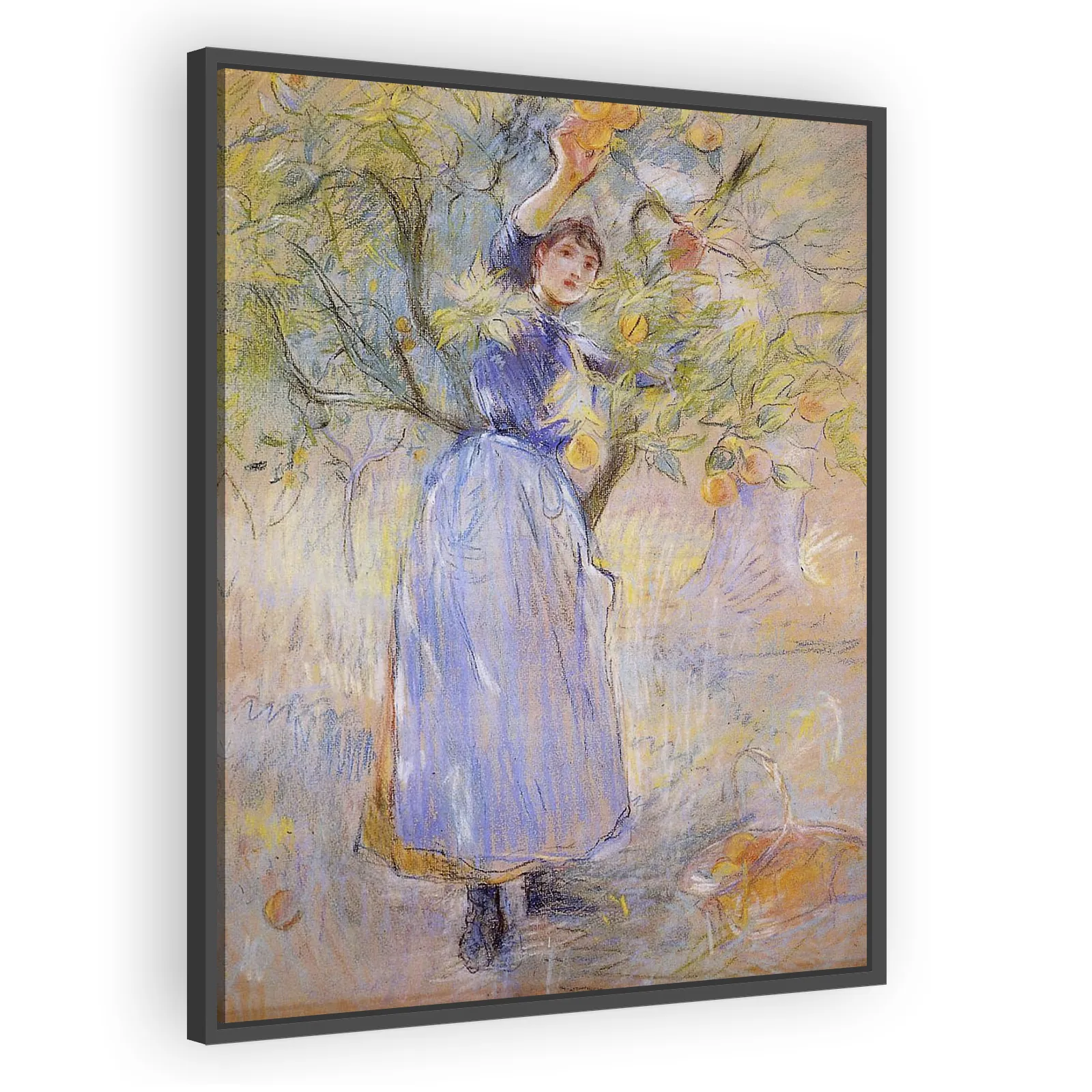 Berthe Morisot’s La cueillette des oranges (1889) captures a luminous moment of women harvesting oranges. A delicate example of Impressionist brushwork, subtle color harmonies, and intimate modern lif...