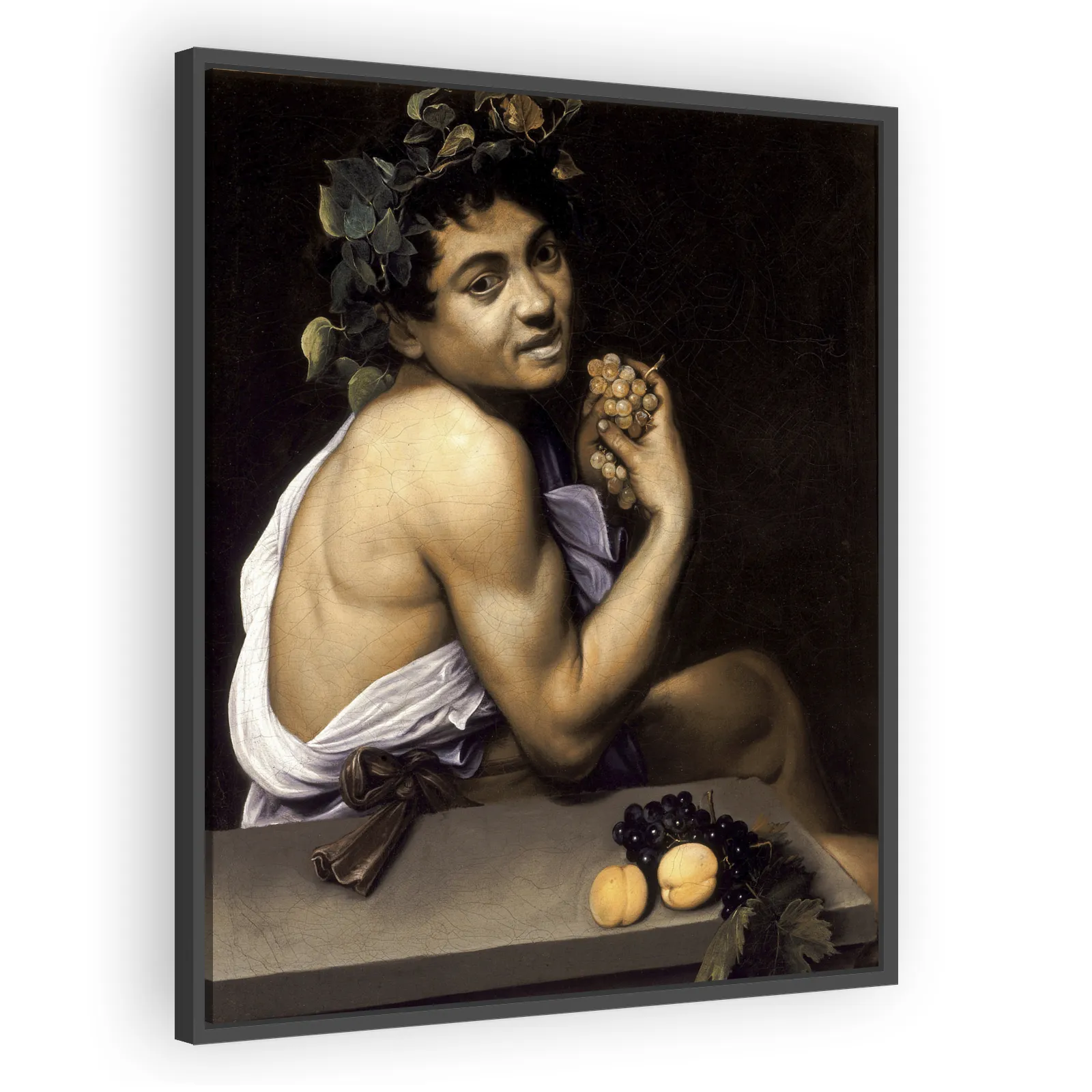 Caravaggio’s daring Self-Portrait as Bacchus (1595) fuses Baroque realism with mythic playfulness. Vivid chiaroscuro, naturalistic detail, and a provocative gaze make it a compelling statement piece f...