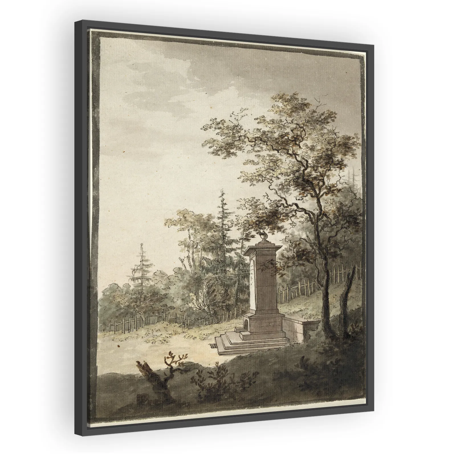 Caspar David Friedrich’s 1797 view of a memorial fountain in the park of Sølyst near Copenhagen. A quiet, topographically faithful copperplate study that marks the beginning of his series of Danish fo...