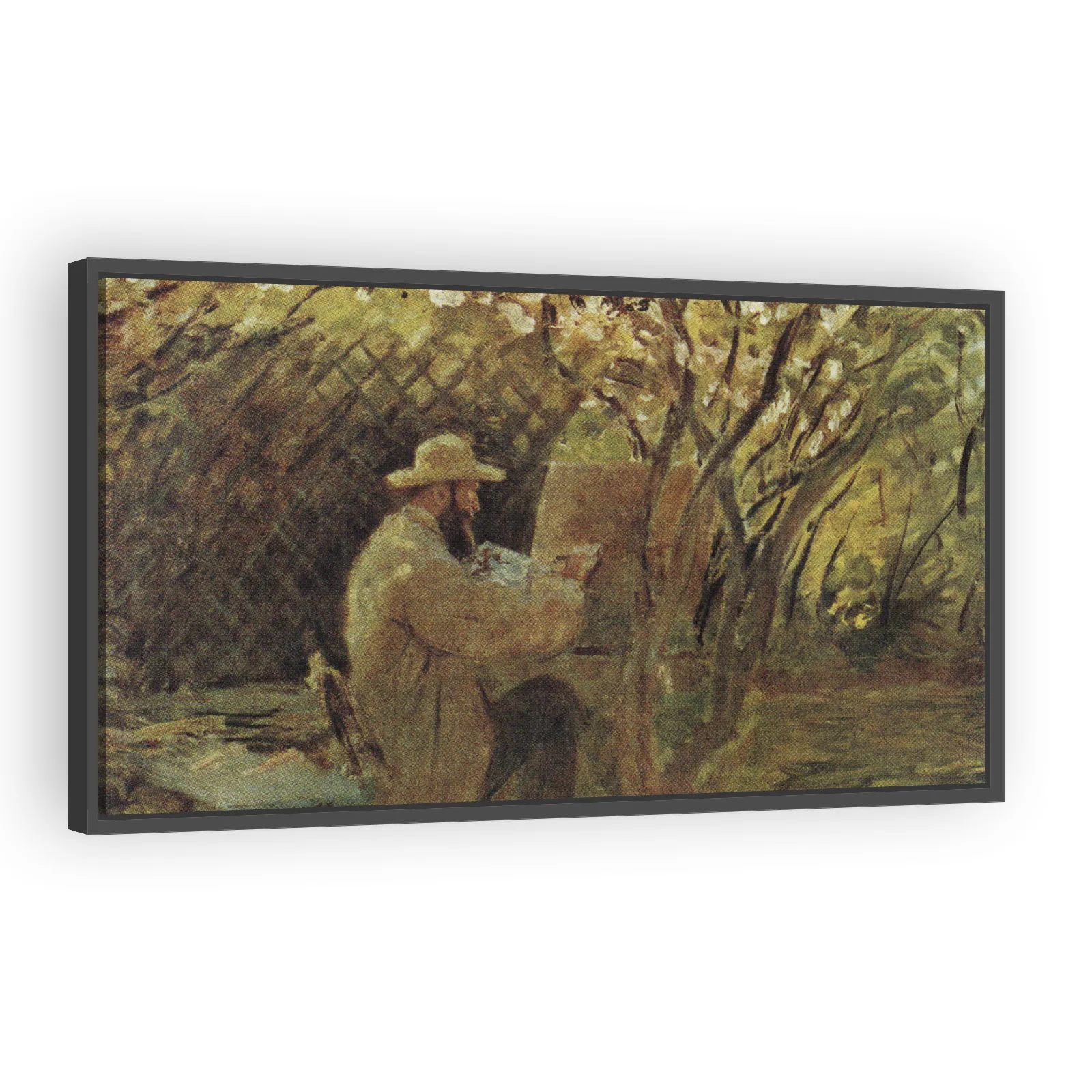 An intimate Impressionist scene by Claude Monet (1874) capturing Édouard Manet at work in Monet’s Argenteuil garden. Celebrated for luminous plein-air light, loosened brushwork, and the social bond be...