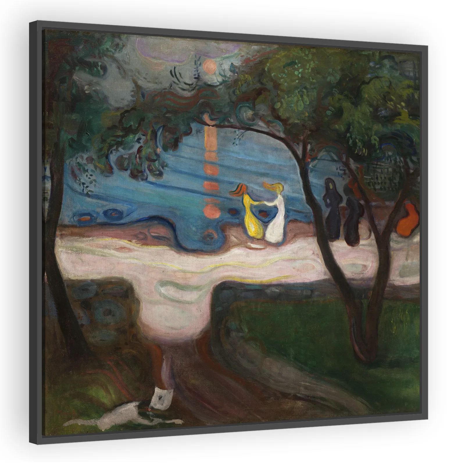Edvard Munch’s Dance on the Shore (1900) captures a charged seaside moment—bold color, fluid brushwork, and psychological intensity combine in a work that appeals to collectors who value symbolist moo...