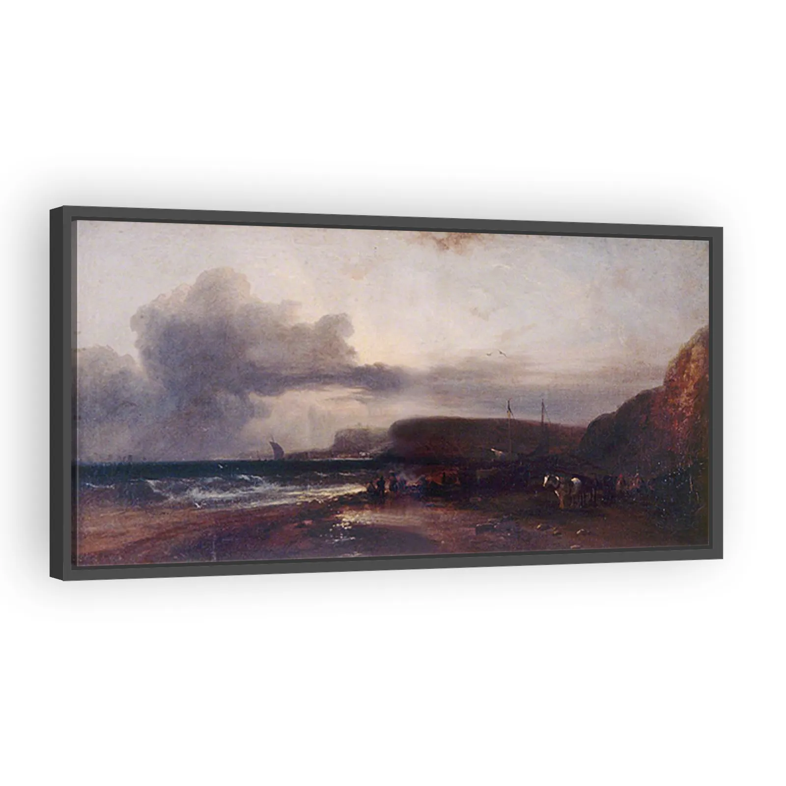 A finely observed 1851 coastal view by George Cole, capturing Hastings’ Rock-a-Nore with atmospheric light, maritime activity and topographical detail—an evocative example of Victorian landscape paint...