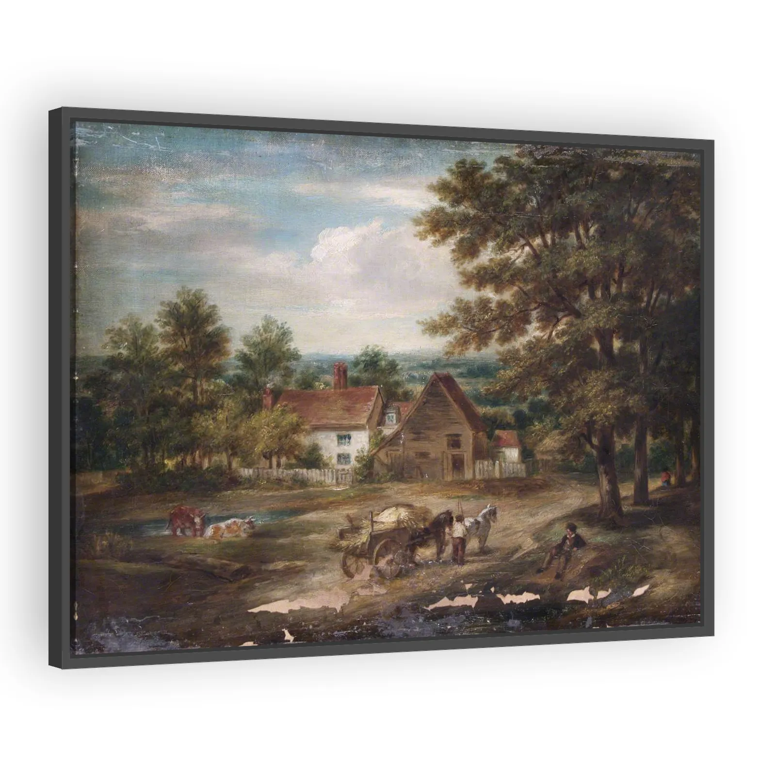 A luminous mid-19th-century view of Wyldes Farm at Hampstead by John Wood, painted on 21 August 1857. Combining plein air observation with careful draftsmanship, the work captures rural charm and Vict...