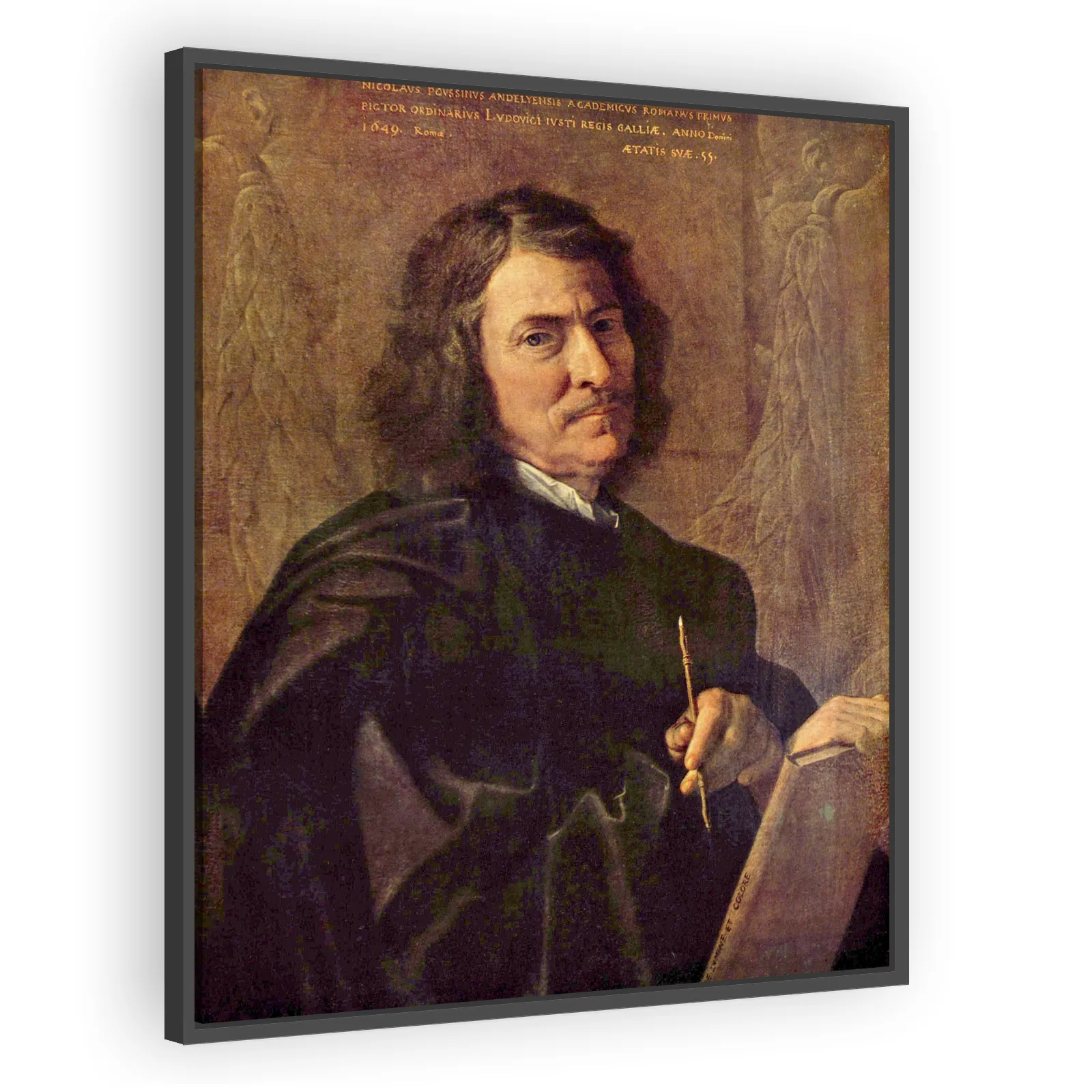 Nicolas Poussin (1594–1665) was a French Baroque painter who established the principles of French Classicism through disciplined, classical compositions and idealized landscapes. He is known for history paintings and pastoral scenes that influenced Neoclassical painters and the academic tradition.