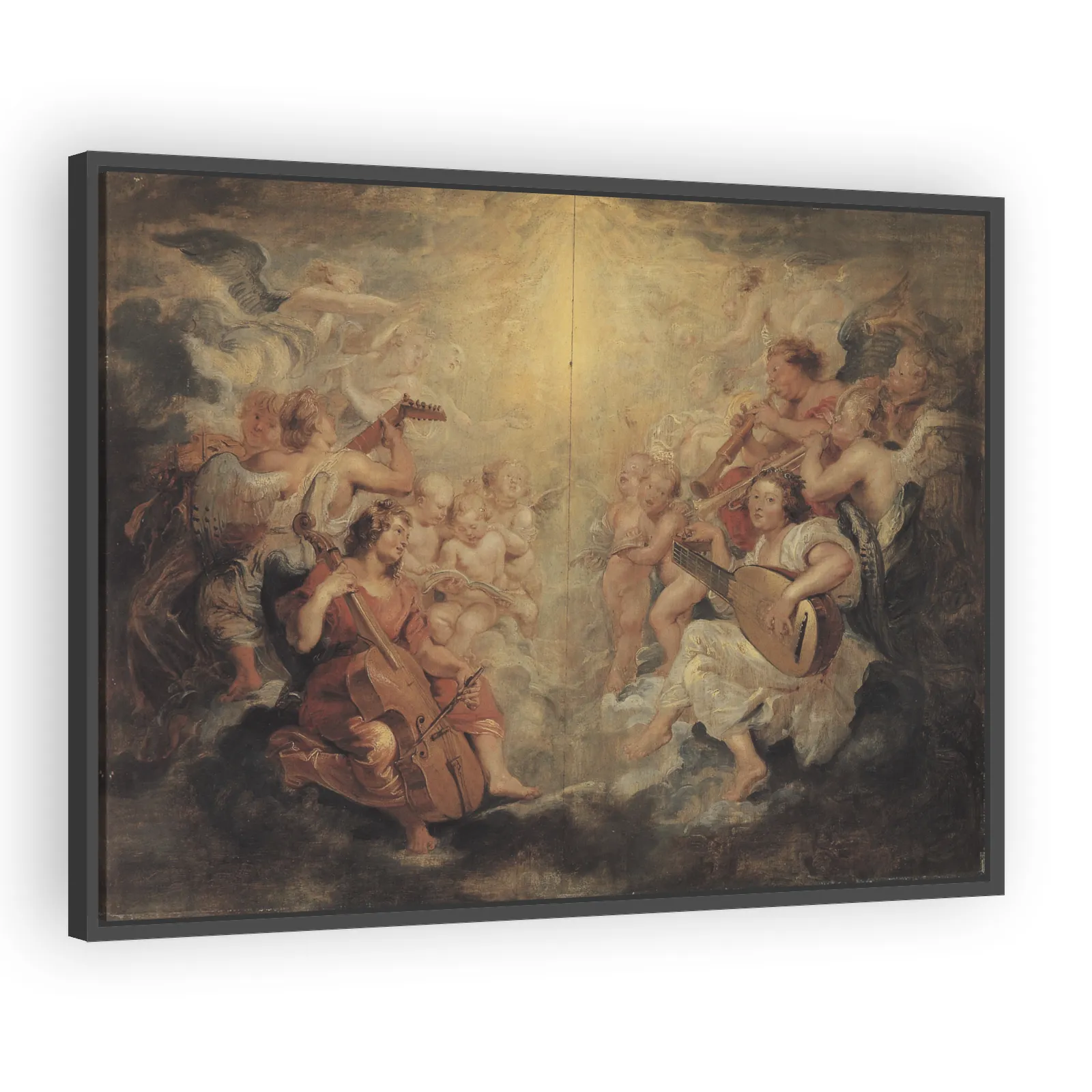 A dynamic Baroque study by Peter Paul Rubens (1626), this combined pair of modelli presents angelic musicians conceived for the Triumph of the Eucharist tapestry cycle. Rich in movement, color, and sc...