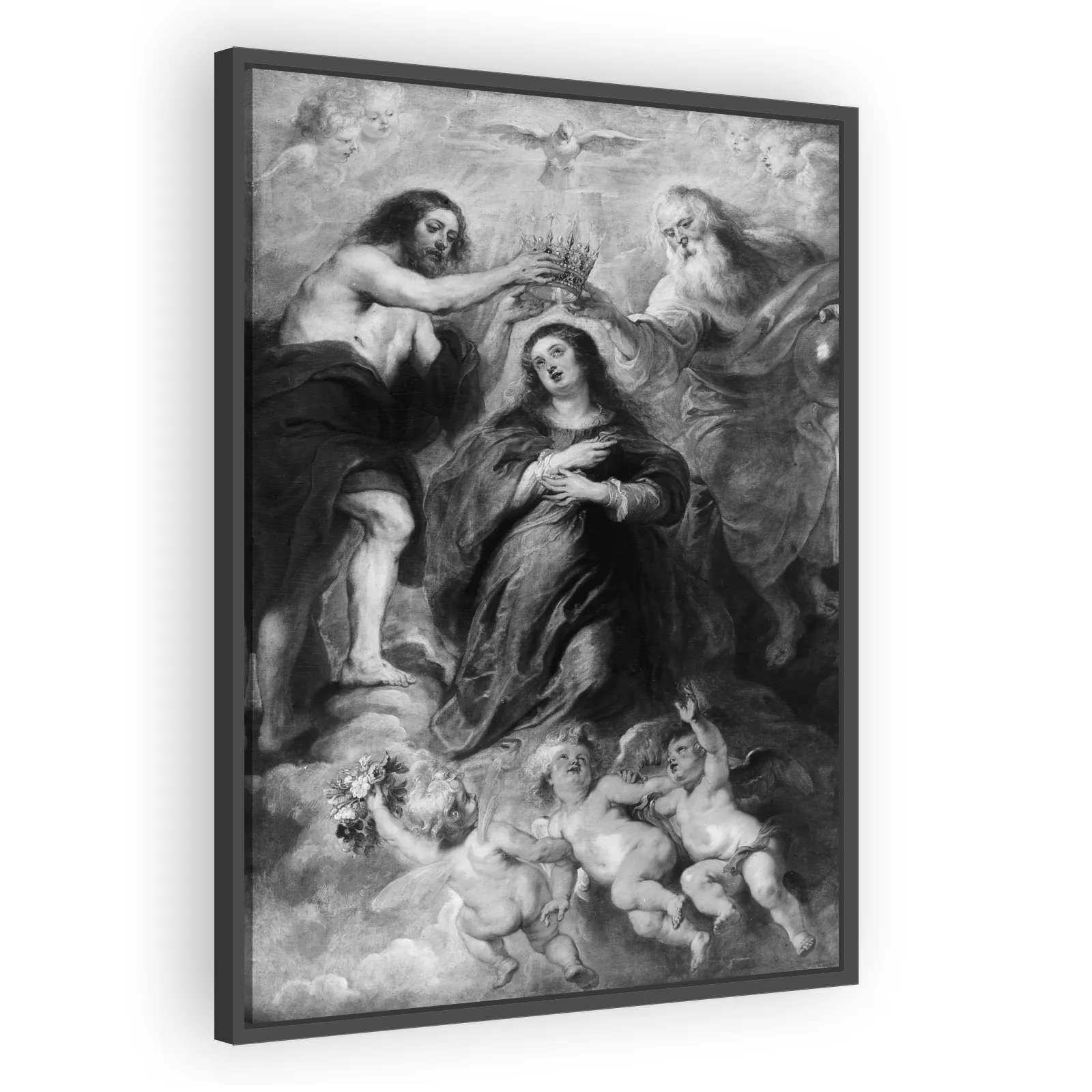 A monumental 1633 Coronation of the Virgin by Peter Paul Rubens, combining Baroque drama, luminous color, and dynamic composition—an evocative centerpiece from the Gemäldegalerie Berlin that exemplifi...