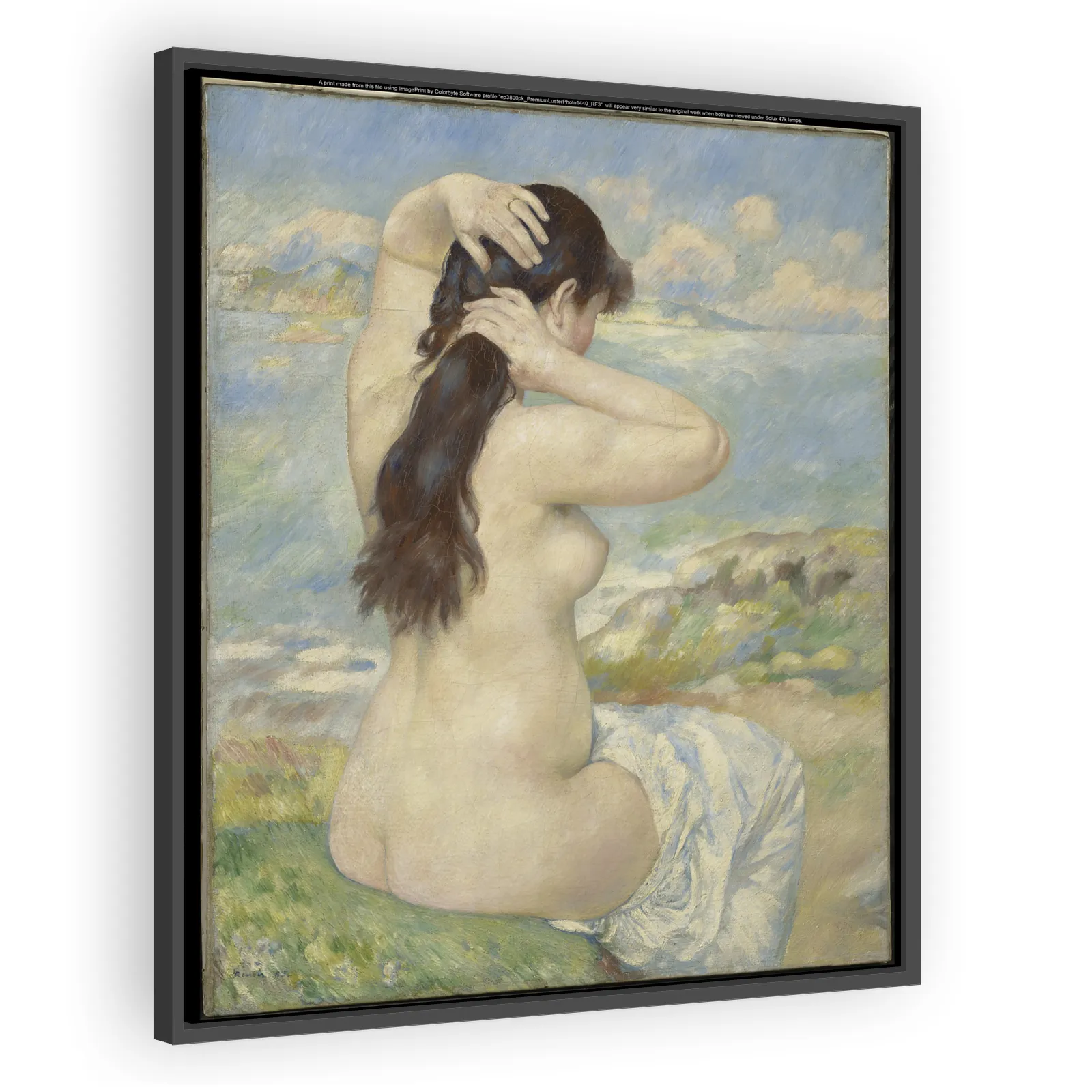 A luminous 1885 Renoir masterpiece from the Clark Art Institute, Bather Arranging Her Hair captures the artist’s sensuous brushwork, warm palette, and intimate glimpse of modern leisure—ideal for coll...