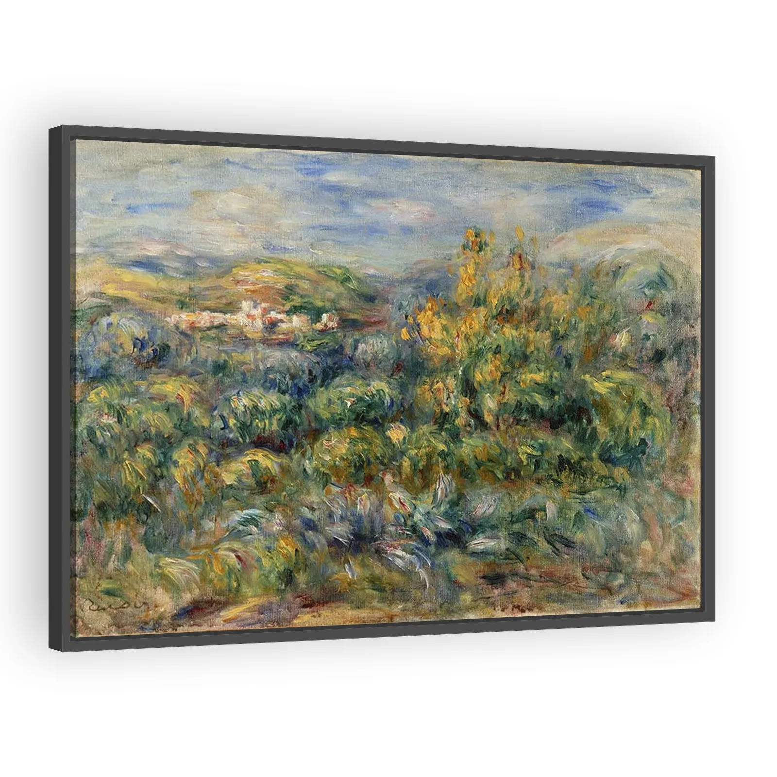 A luminous Riviera landscape by Pierre-Auguste Renoir, painted during his late period. Warm light, rich color, and fluid brushwork capture the charm of Cagnes-sur-Mer—an evocative choice for collector...