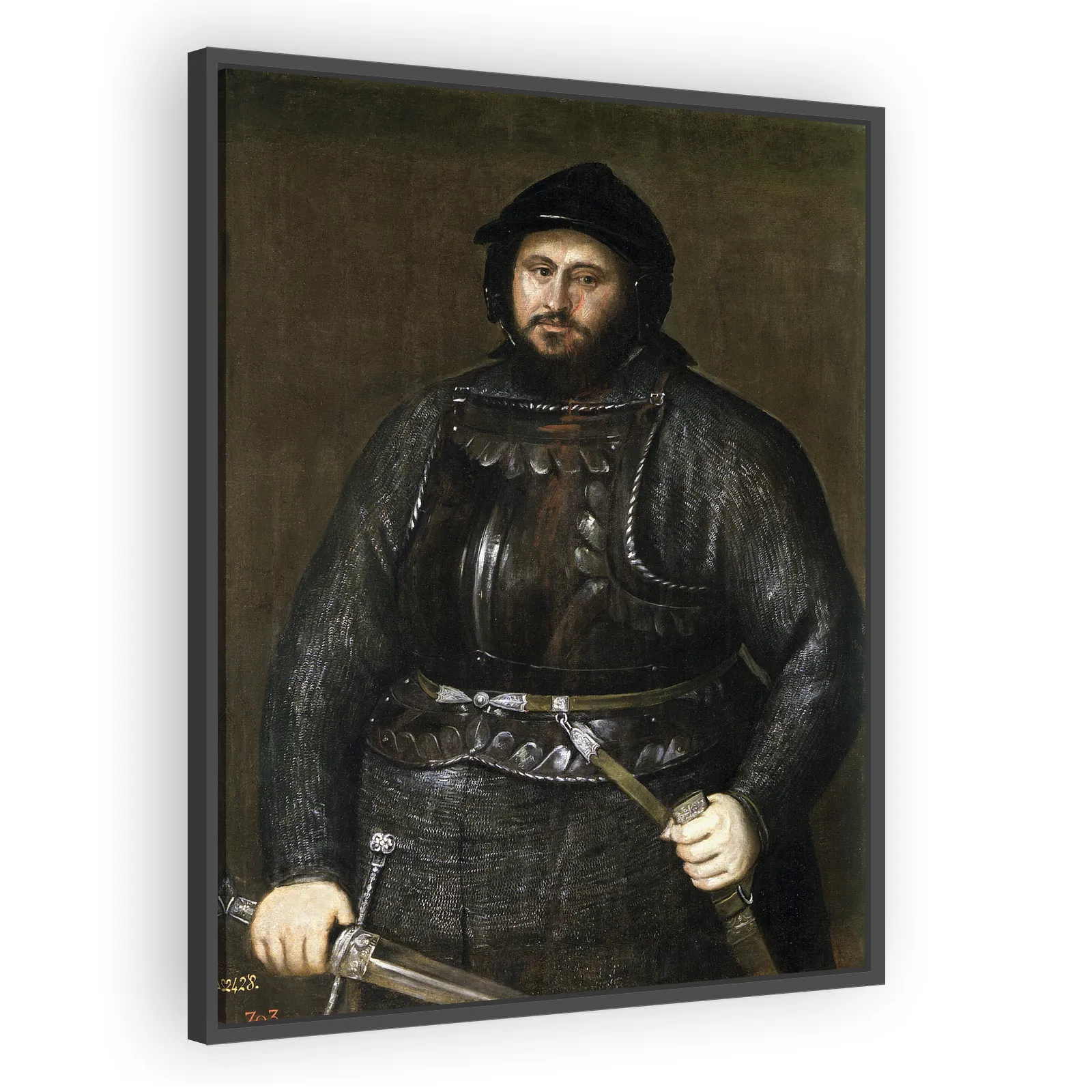 Titian’s 1548 portrait of John Frederick I captures the defeated Elector wounded and shackled after Mühlberg. A masterful study in color, texture and psychological dignity, it blends Venetian painterl...