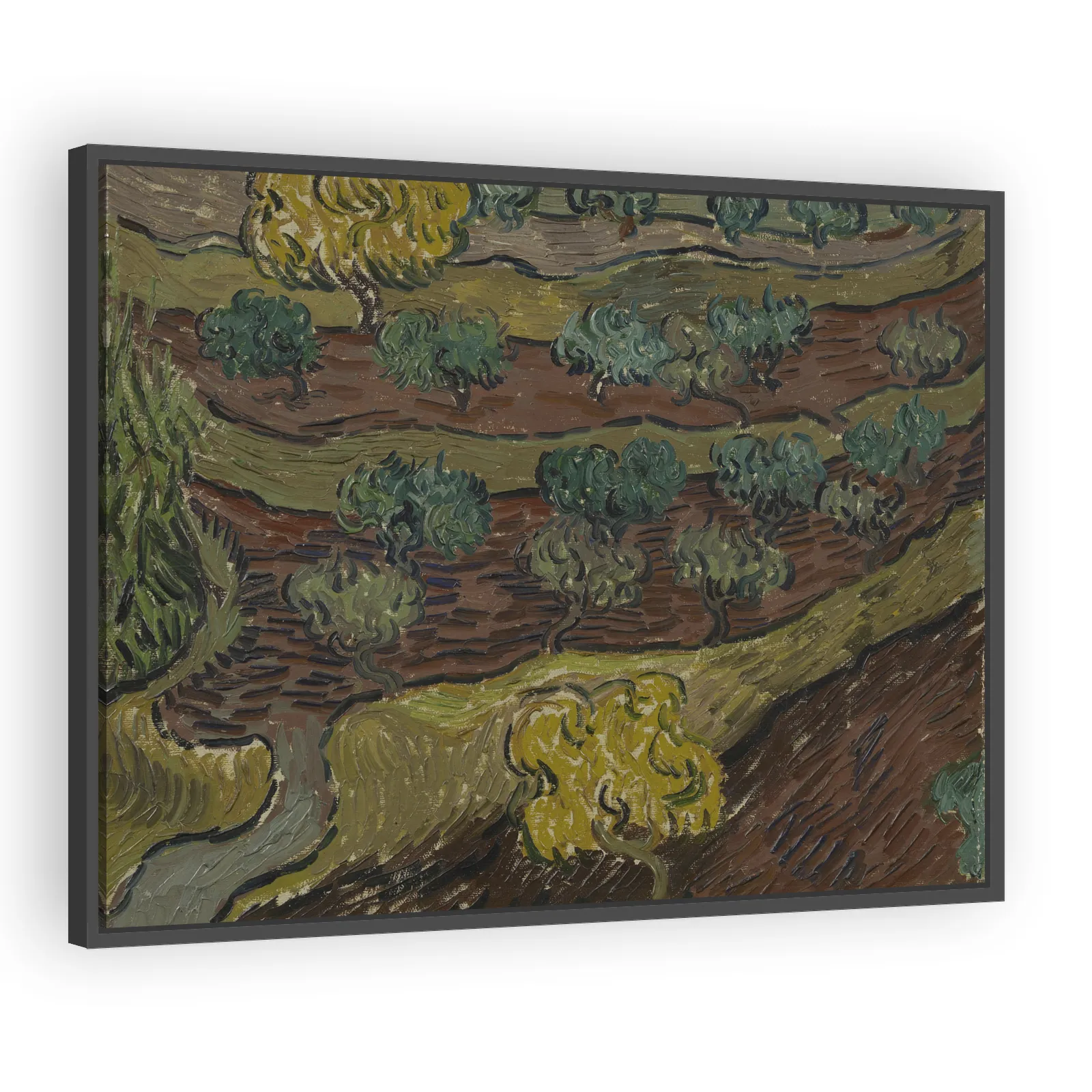 A vibrant late‑1880s work by Vincent van Gogh, Olive Trees on a Hillside showcases his expressive brushwork, rich color contrasts, and emotional engagement with nature during his Saint‑Rémy period.