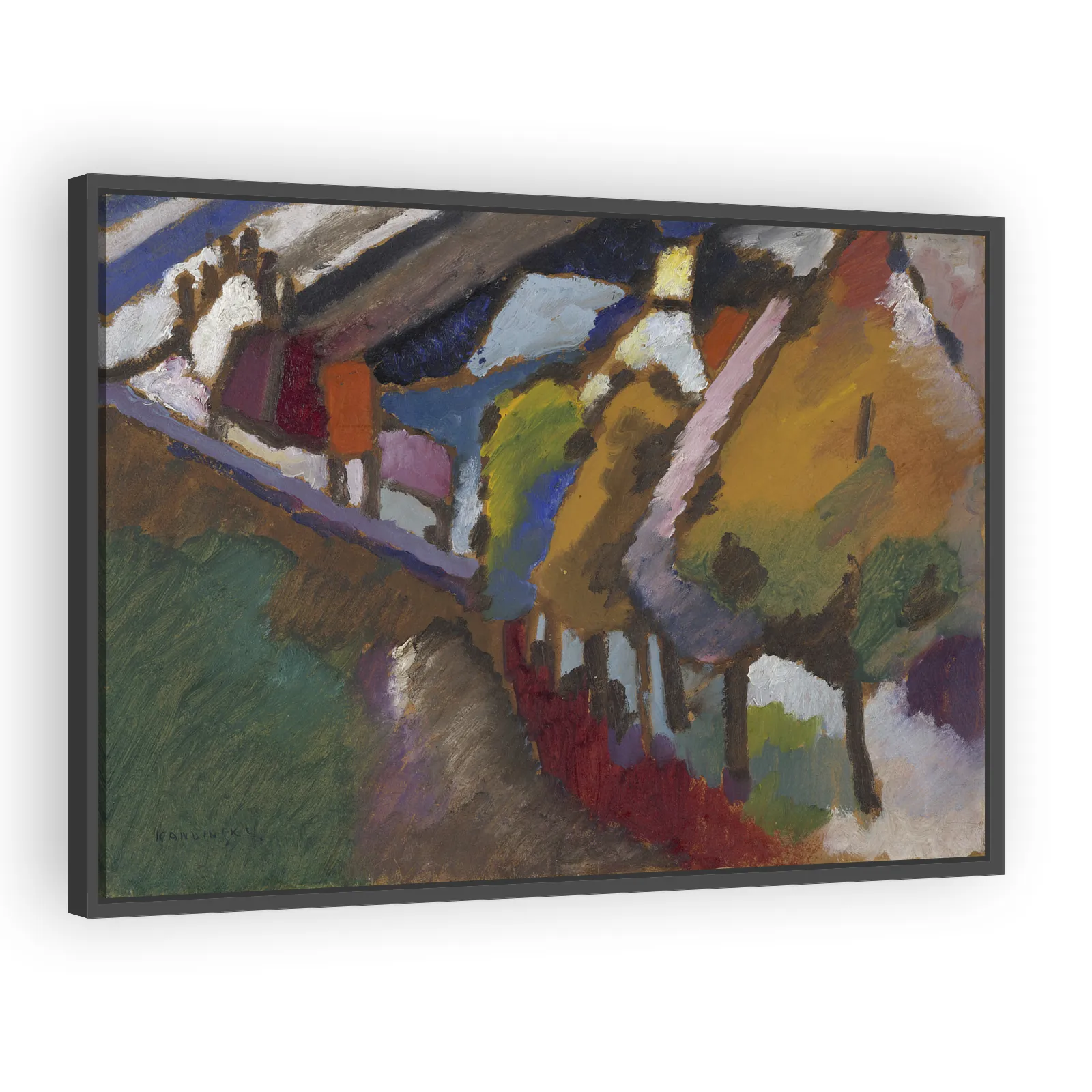 A 1909 landscape by Wassily Kandinsky capturing Murnau’s village forms with expressive color and simplified geometry. This transitional work bridges representational painting and Kandinsky’s move towa...