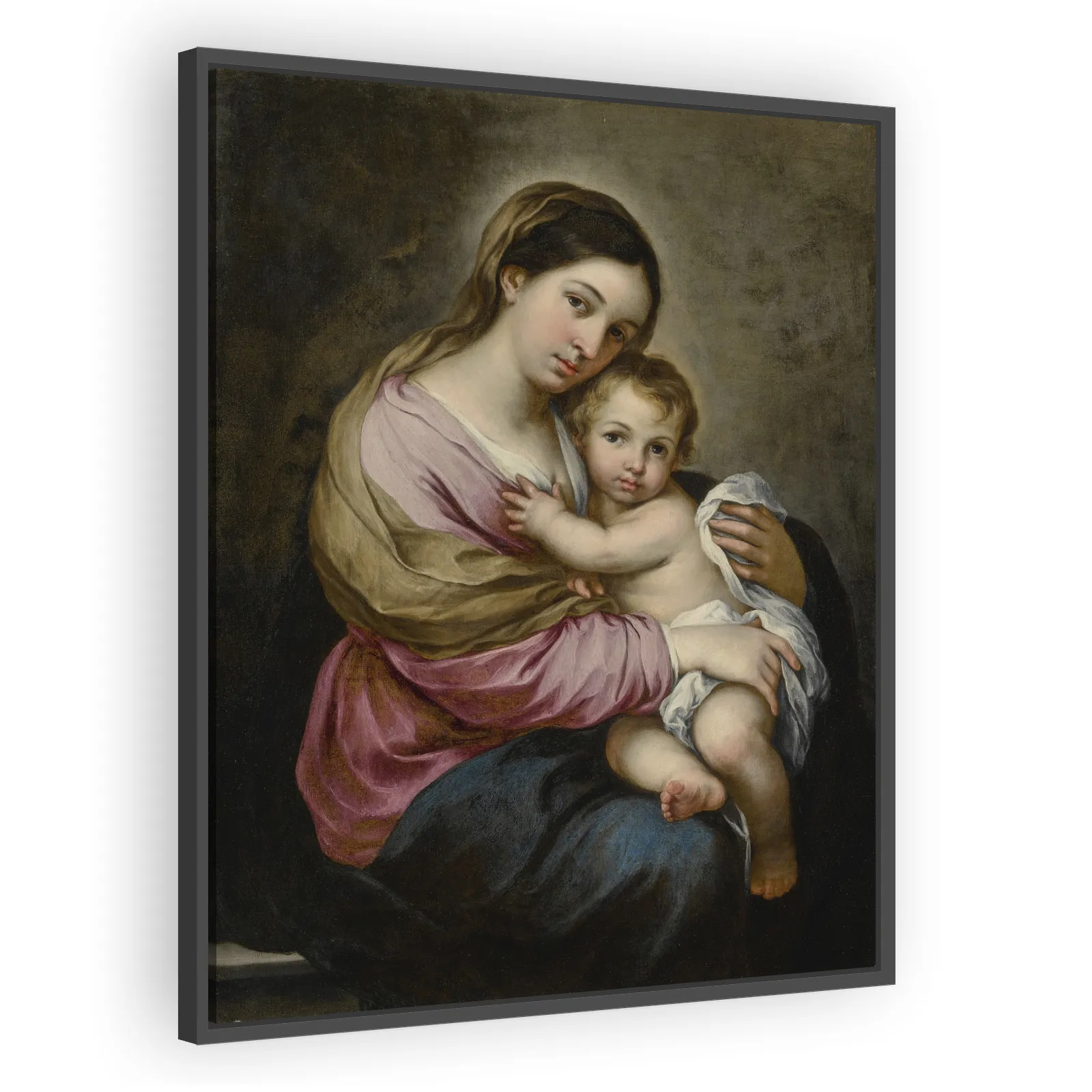 A tender, late-17th-century oil on canvas by Bartolomé Esteban Murillo (c.1680). Measuring 103 x 76.8 cm, this intimate depiction of the Virgin and Child exemplifies Murillo’s warm palette, soft model...