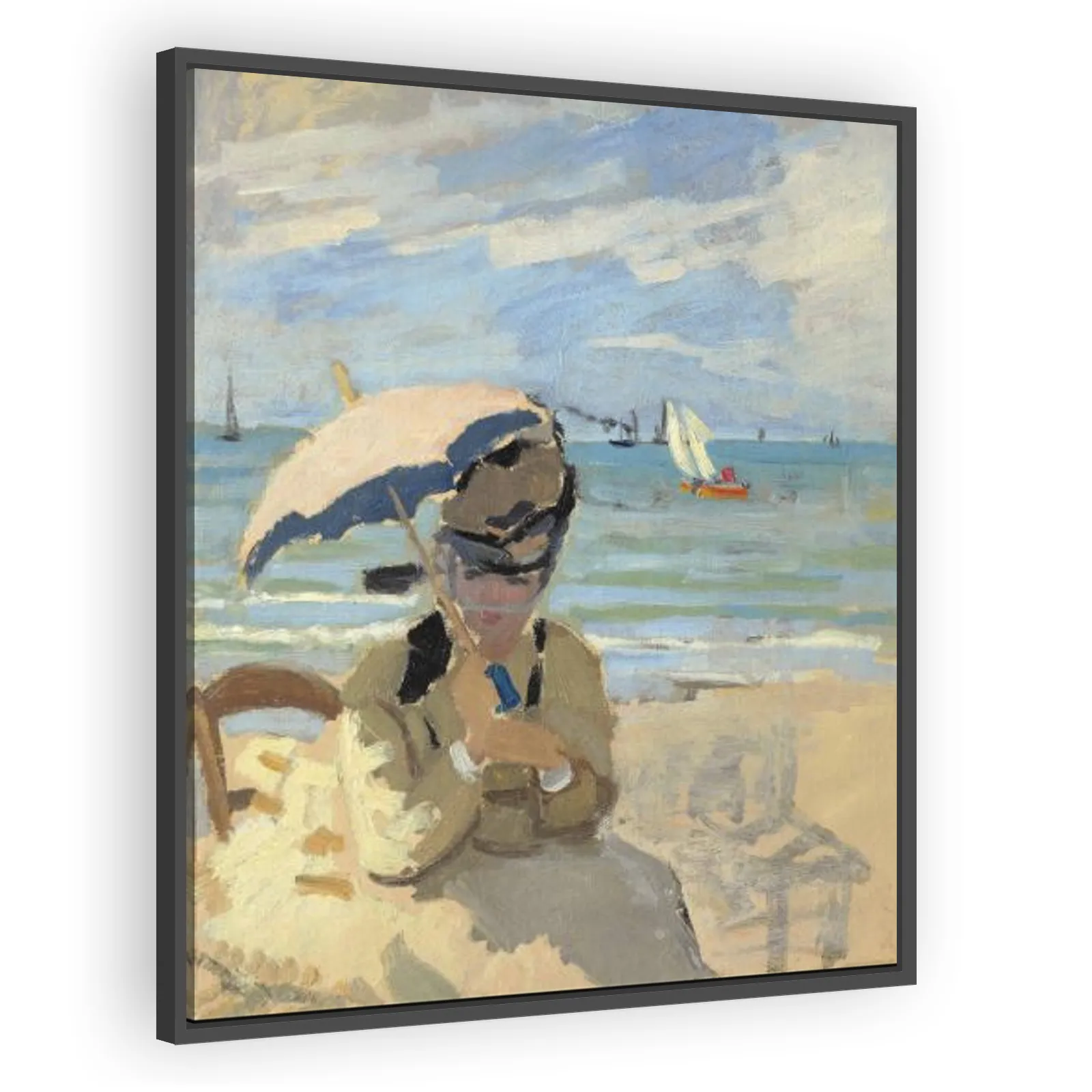 A luminous Impressionist portrayal of Camille on Trouville’s sands, this intimate Claude Monet composition captures fleeting coastal light, casual modern leisure, and the artist’s pioneering brushwork...