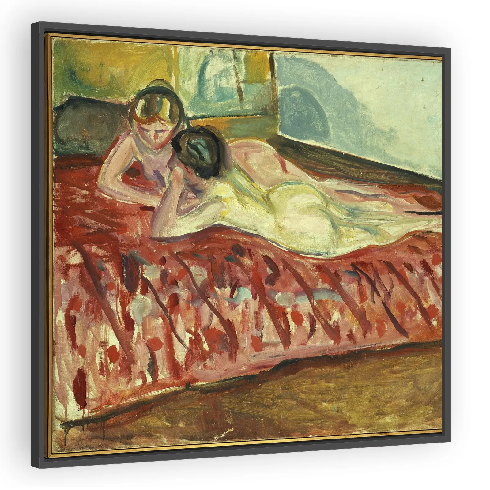 Edvard Munch’s Two Reclining Nudes (1917) captures intimate introspection with bold color and simplified form. A late-career work blending expressionist feeling and formal restraint, it appeals to col...