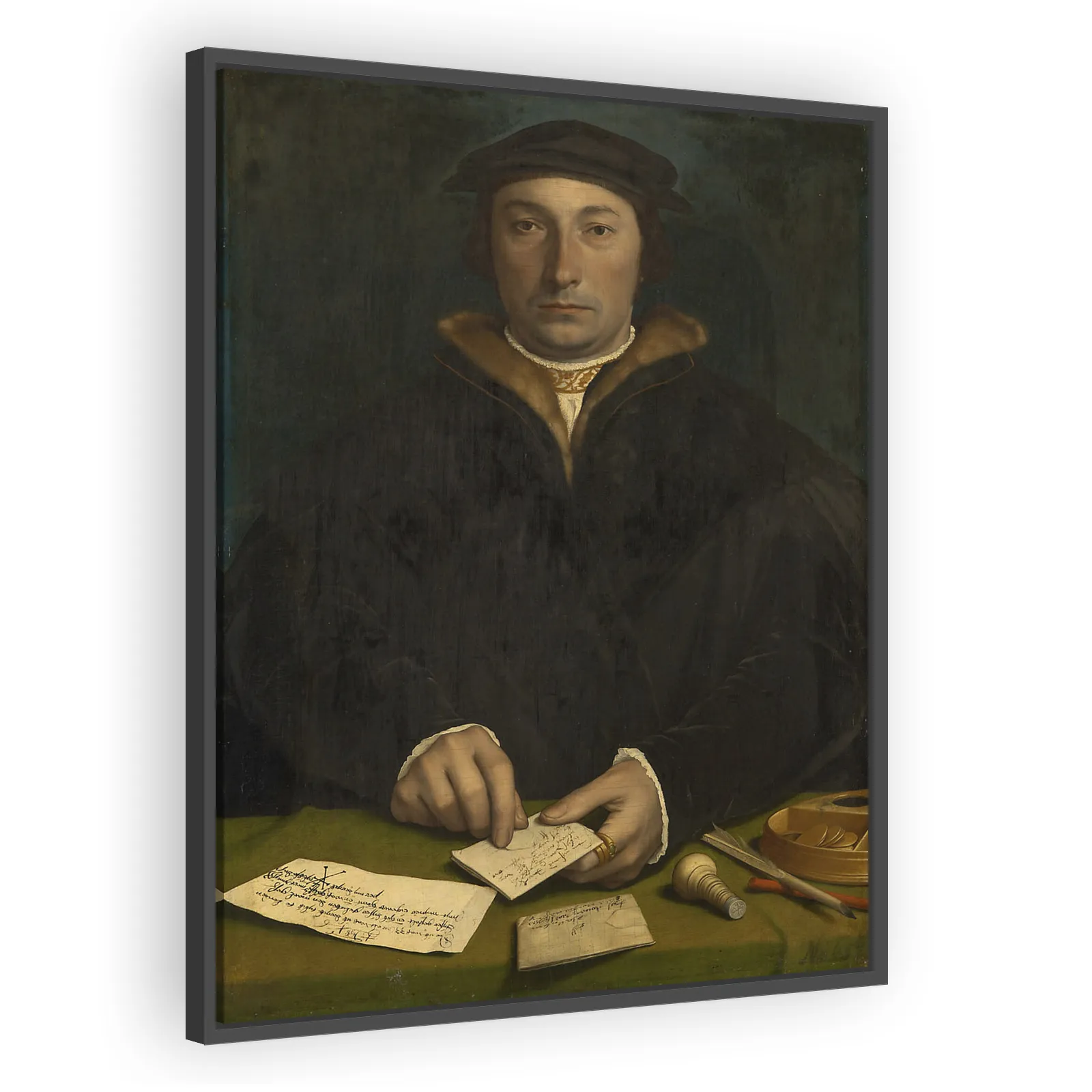 A masterful 1533 portrait by Hans Holbein the Younger, capturing the quiet authority and material refinement of a prosperous merchant. Precise realism and subtle symbolism make this work a striking ex...