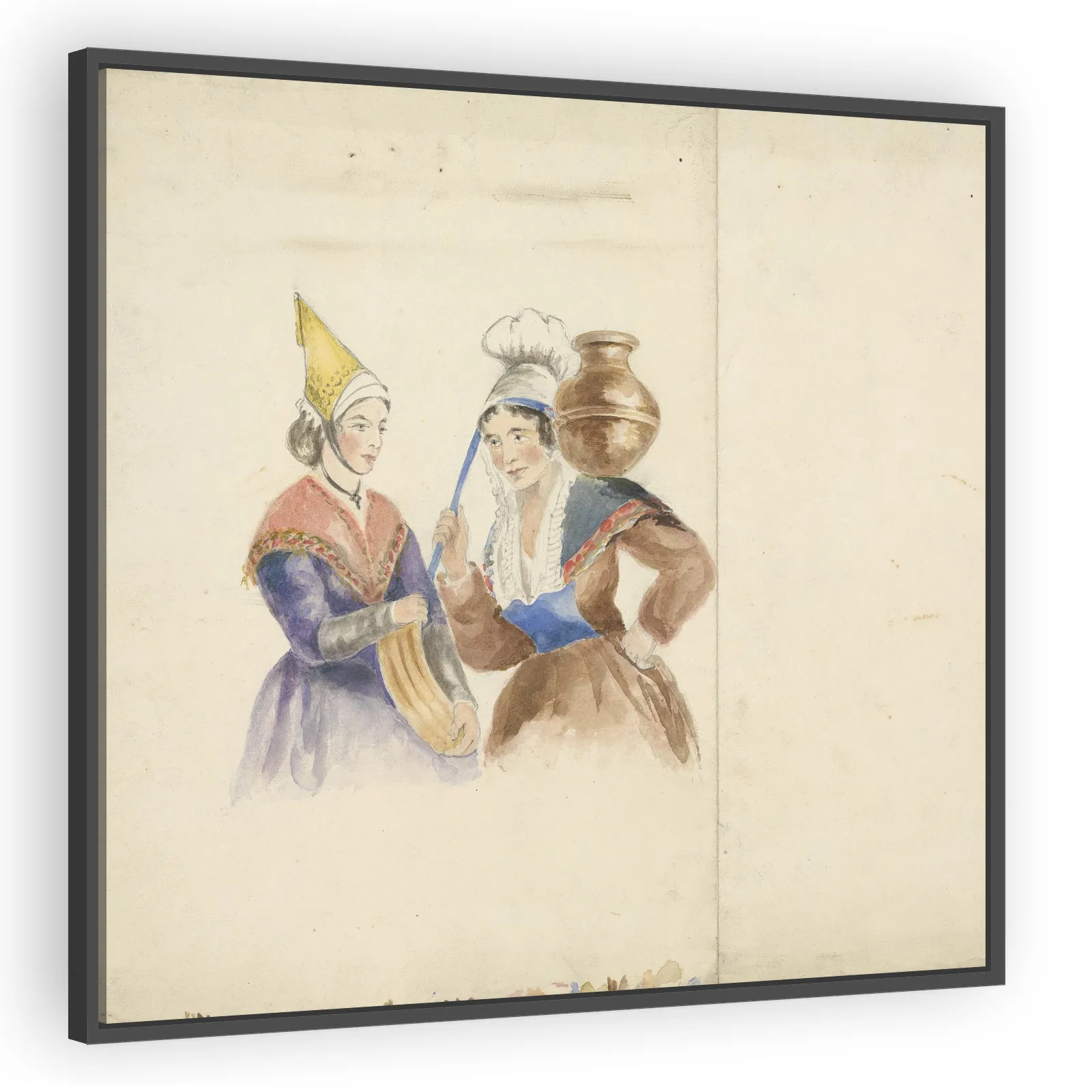 Isaac Weld’s 1816 depiction of Two Women in Colorful Costume captures lively dress and character through precise line and delicate coloration. A vivid glimpse into early 19th-century fashion and socia...