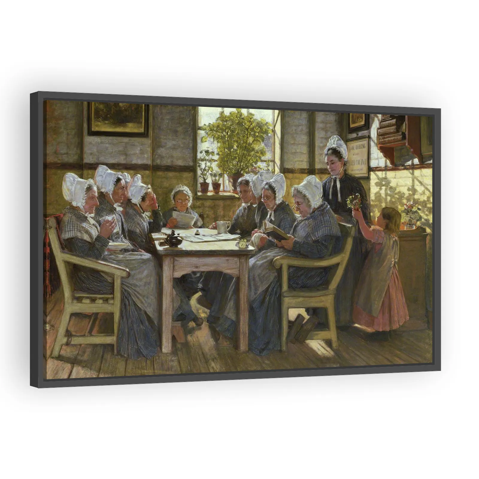 A poignant 1877 scene by James Charles portraying a Bible reading in a Chelsea workhouse. The painting captures Victorian social realities, intimate storytelling, and moral reflection—appealing to col...