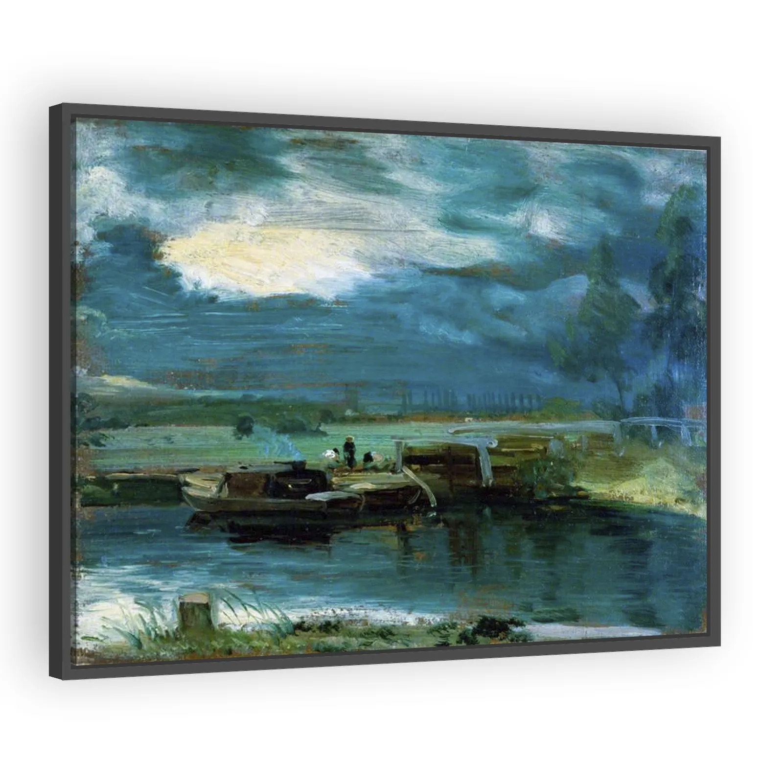 John Constable was an English Romantic landscape painter known for naturalistic, atmospheric depictions of the Suffolk countryside. His plein-air studies of skies and rural scenes reshaped landscape art and remain highly valued by collectors.
